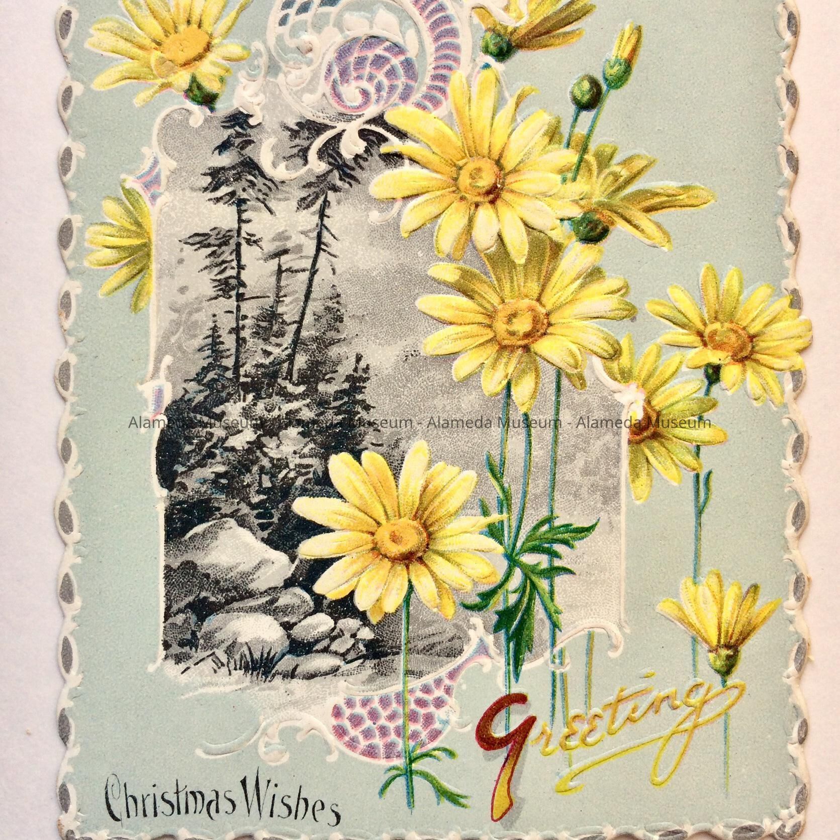 History of Object: Christmas greeting card that originally belonged to Charlotte Deas, member of an early Alameda family.