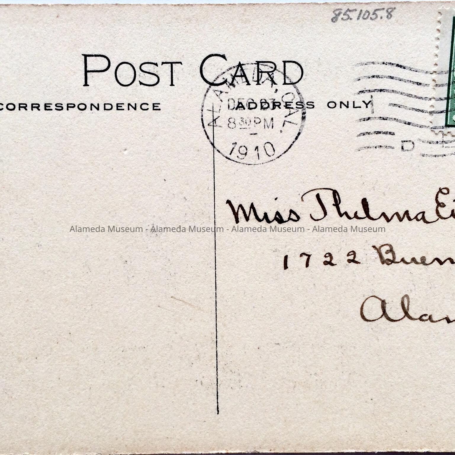 Description: Photolithograph postcard with printed caption "A Merrie Christmas to you from Alameda, Calif. Signed on the reverse side “Published by Richard Behrendt, San Francisco, Cal."
