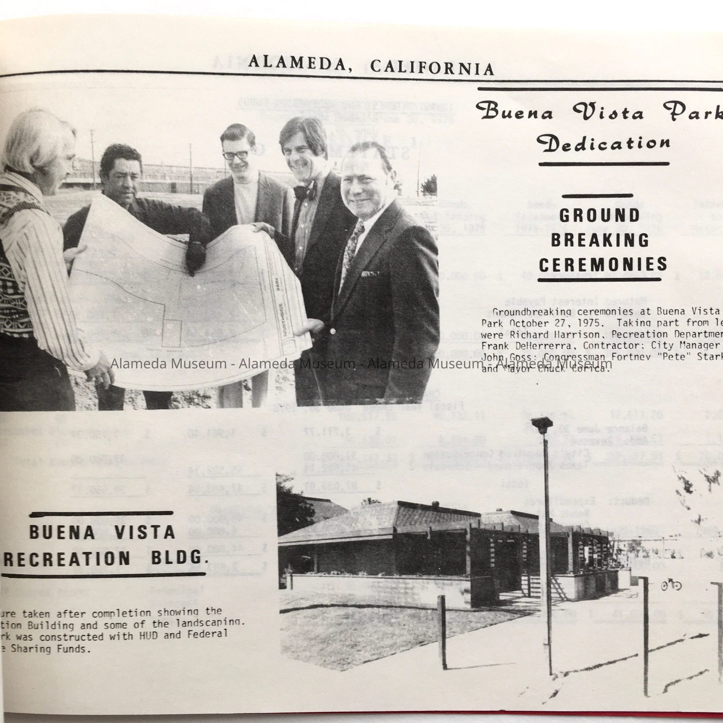 History of Object: City Auditor's Report, 1976. The Auditor submitting the reports was Raymond D. Martin, and the balance sheet was examined by George A. Hackleman, public accountant, 2000 Santa Clara Ave. Page 21 has images from groundbreaking ceremonies at Buena Vista Park.