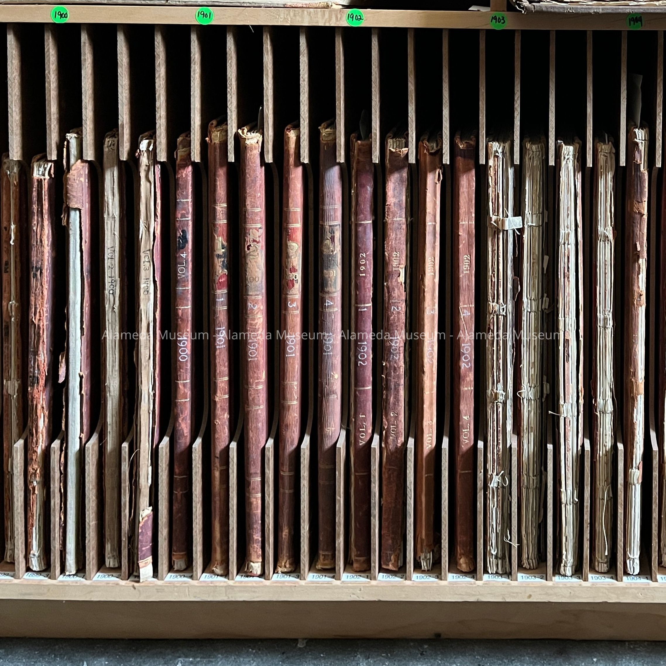 History of Objects: Historical block books held for the City of Alameda from the period before permit records exist. Adding to the cataloging system to document the presence of these unique objects.