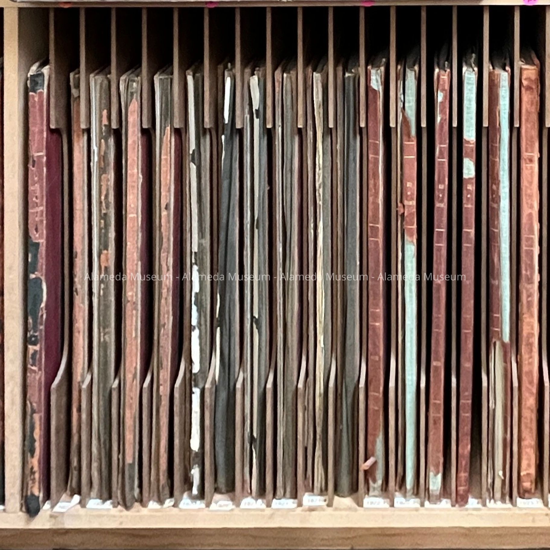 History of Objects: Historical block books held for the City of Alameda from the period before permit records exist. Adding to the cataloging system to document the presence of these unique objects.
