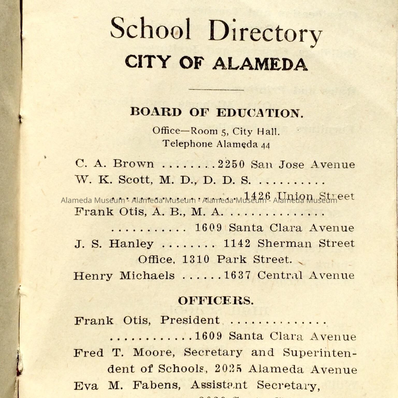 City of Alameda School Directory, 1904-1905Entry/Object ID