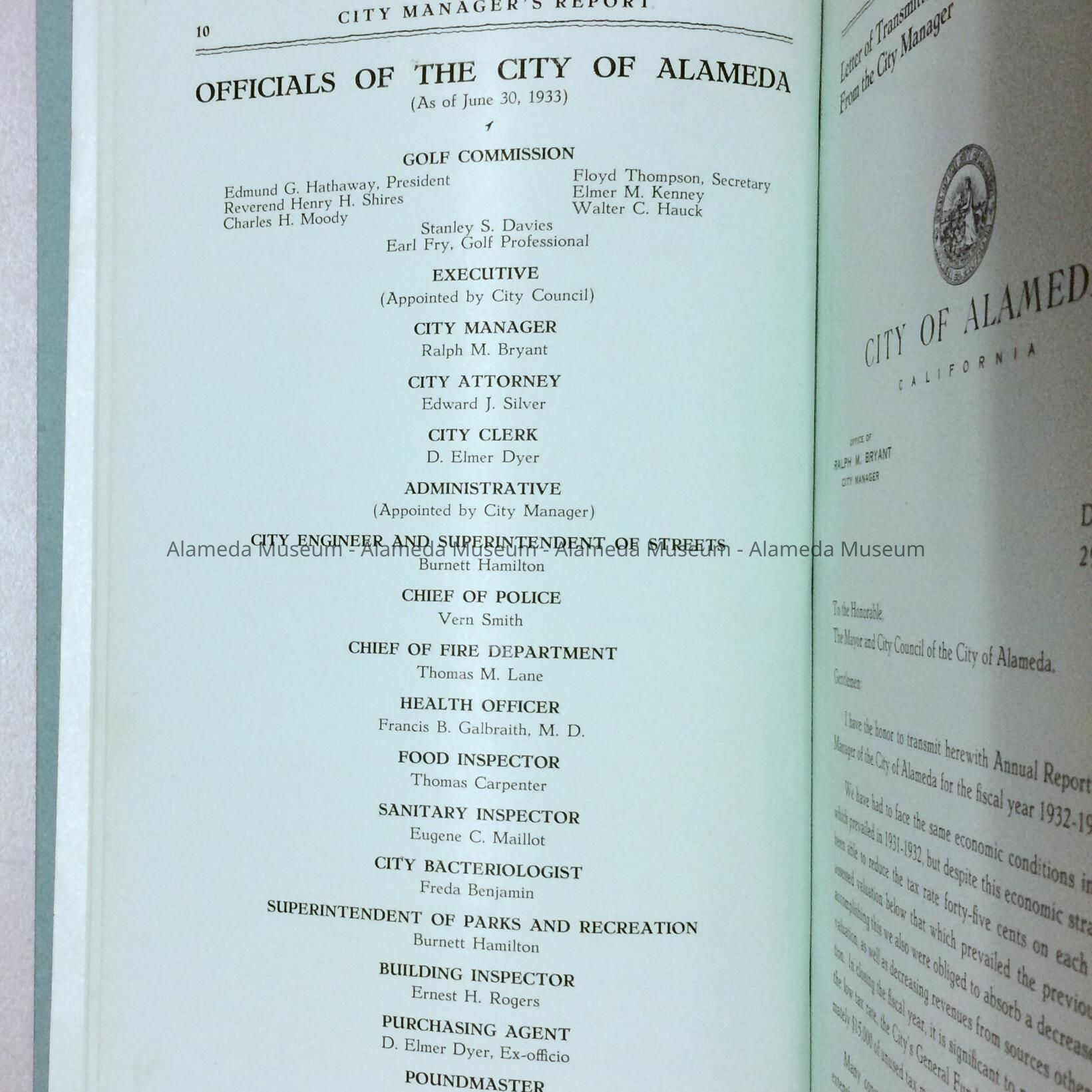 'Civic Affairs of the City of Alameda', 16th City Manager Report, 1932-1933Entry/Object ID