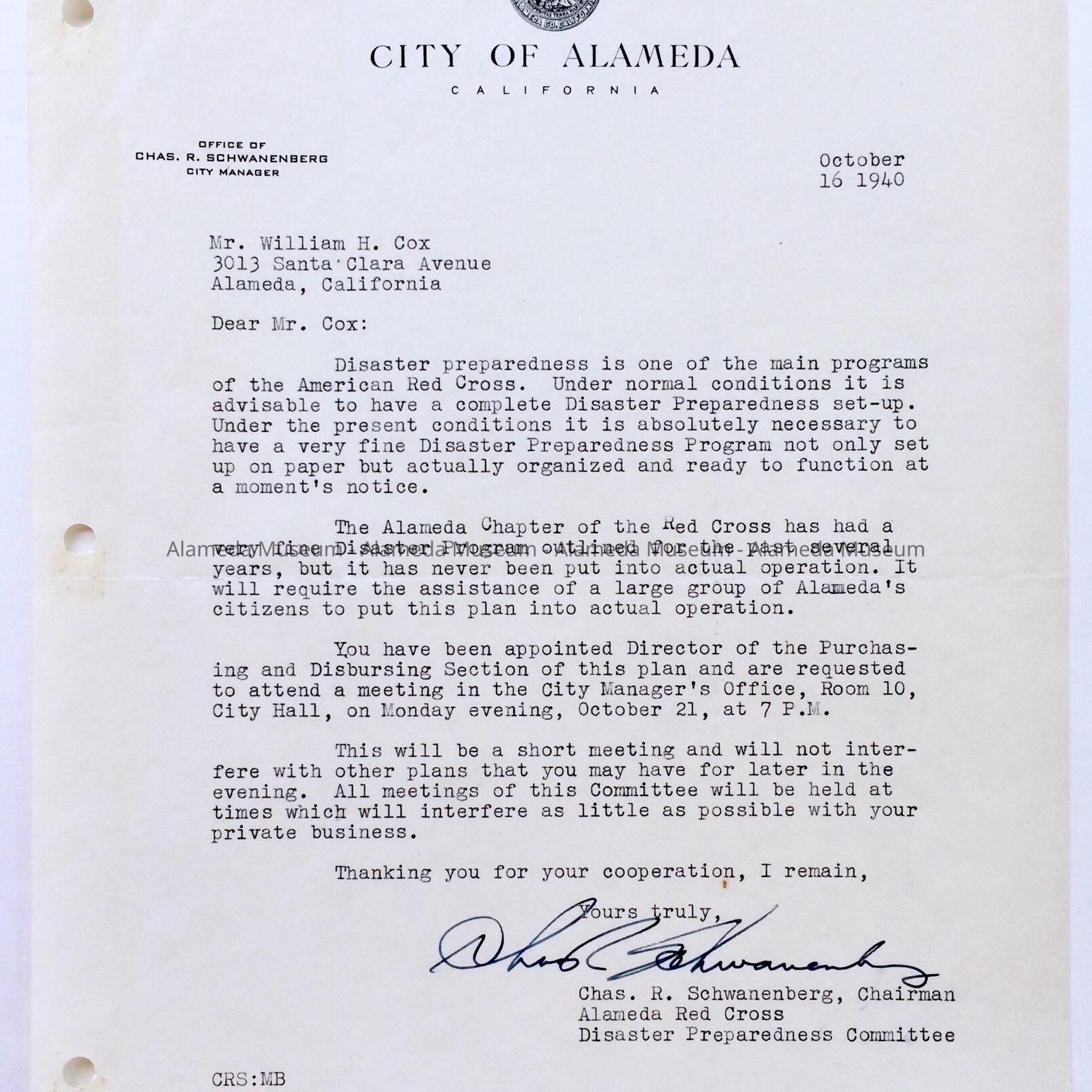 HISTORY OF OBJECT: GROUP OF PAPERS, CIVILIAN DEFENSE & WAR EMERGENCY MATERIAL, BELONGING TO WILLIAM H. Cox.