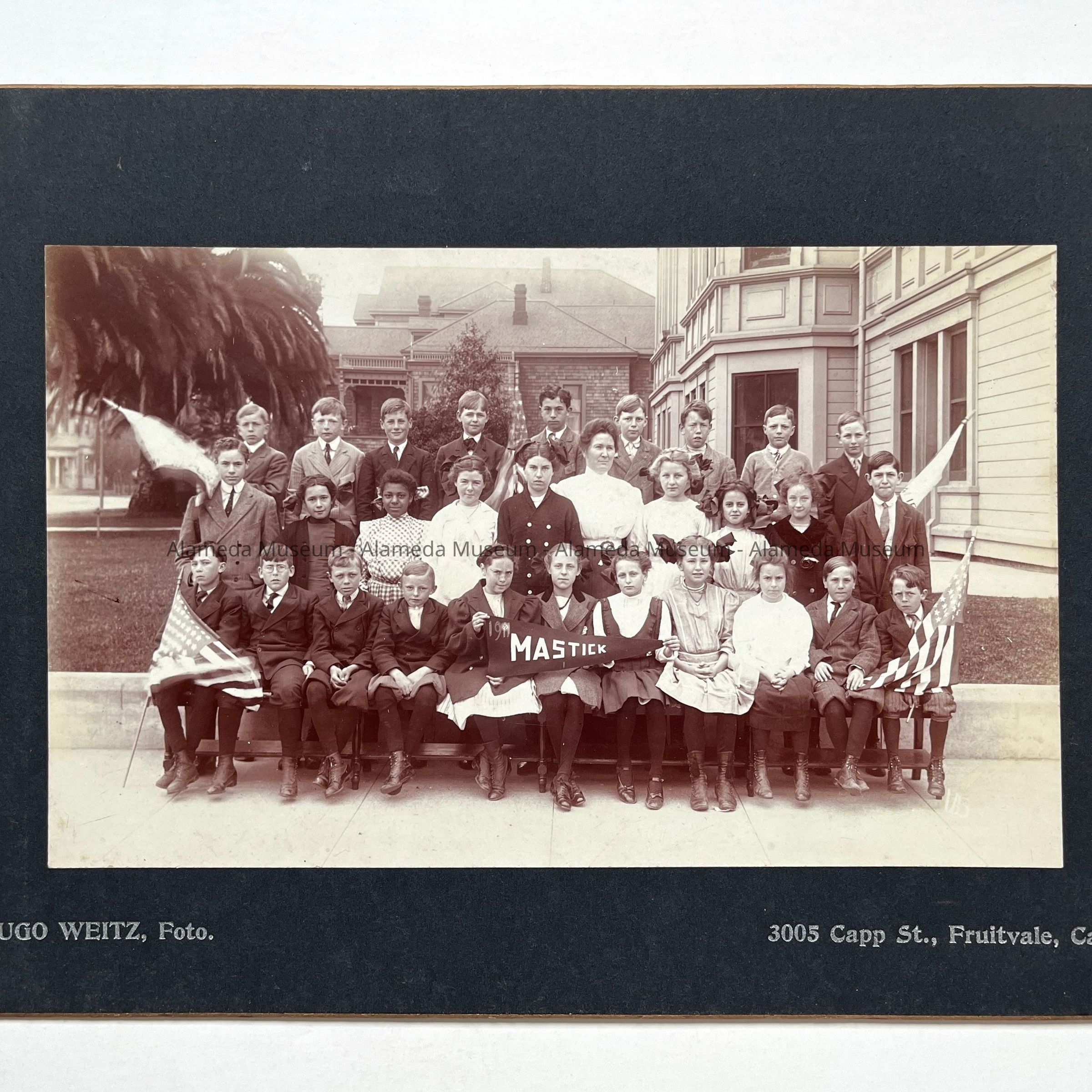 Description: Sepia tinted photograph on heavy charcoal grey colored mounting, signed "Hugo Weitz, Foto., 3005 Capp St., Fruitvale, Calif."