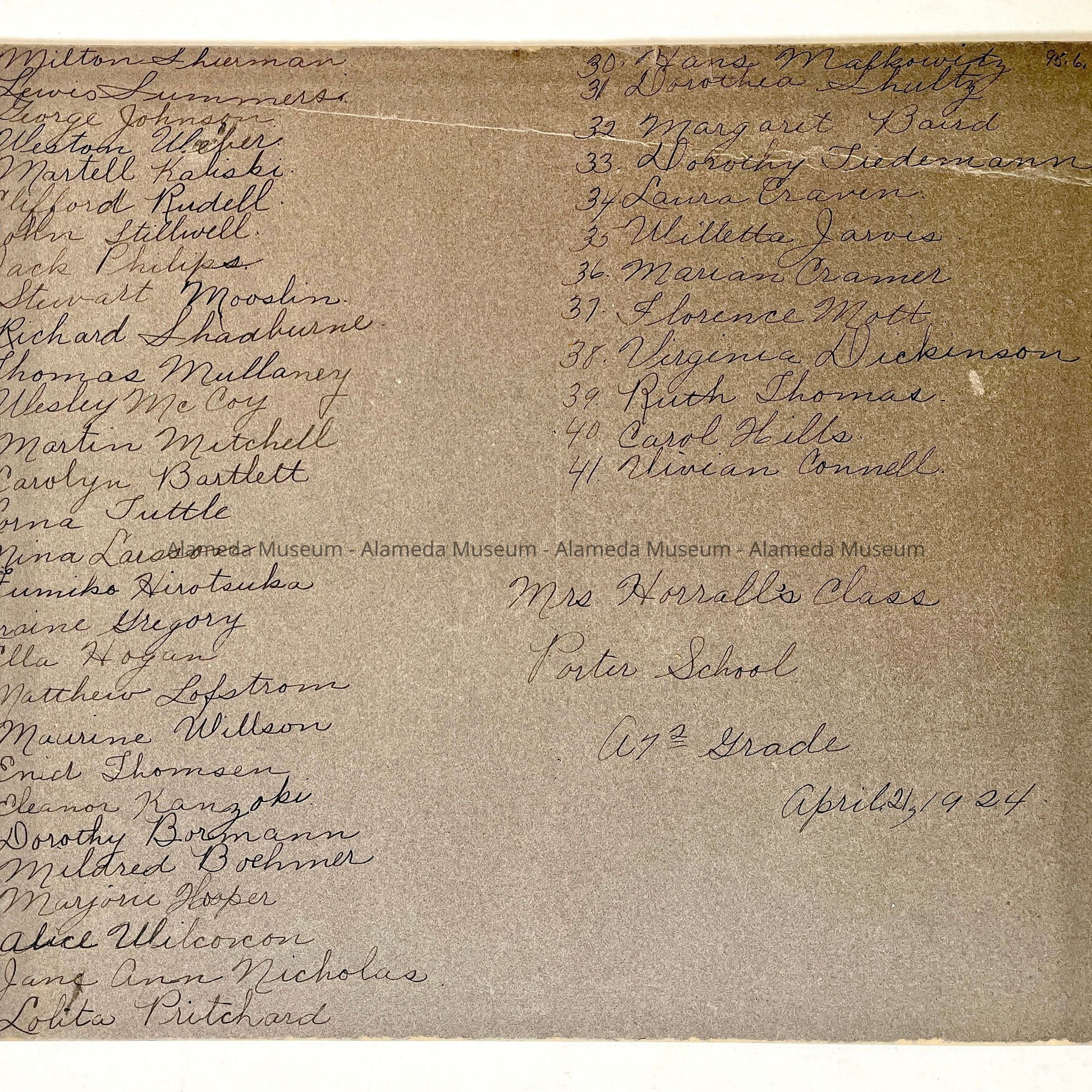 Class Photo Mrs. Norall's A7 Grade, Porter School, by Denton, 1924Entry/Object ID