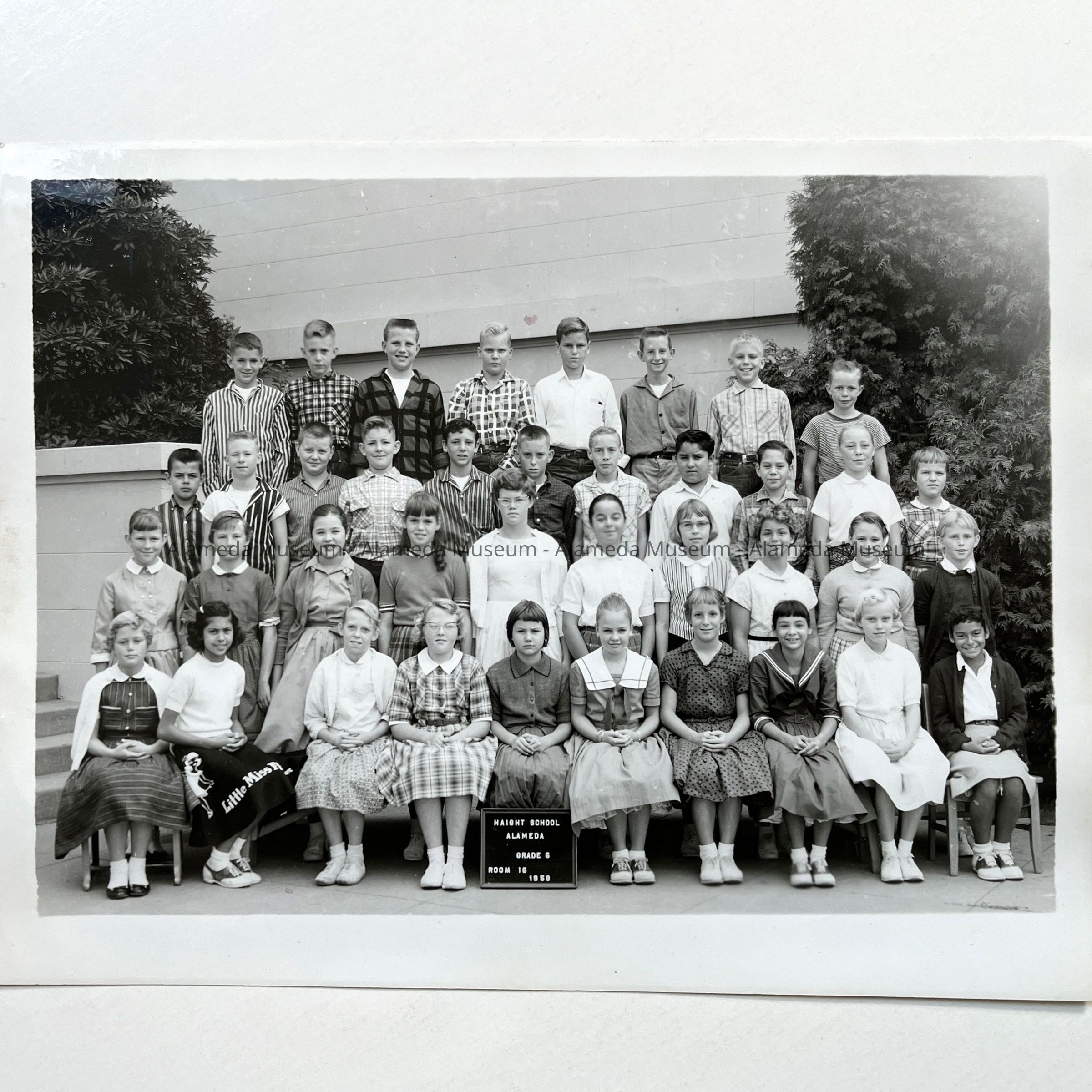 History of Object: Photo of sixth grade class of Haight School in 1958, belonging to Thomas Fenn of 2038 Alameda Avenue.