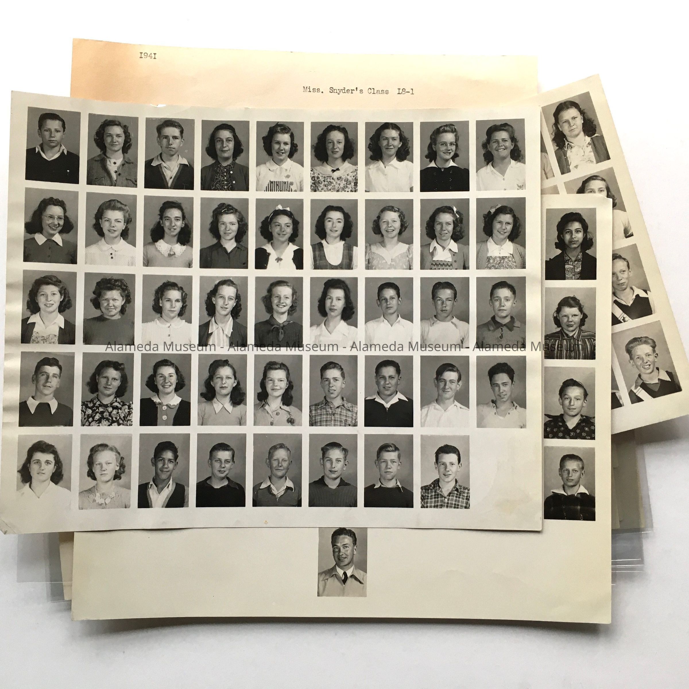 History of Object: Class photos from Washington School classes 6th to 8th grade, Spring 1941.
