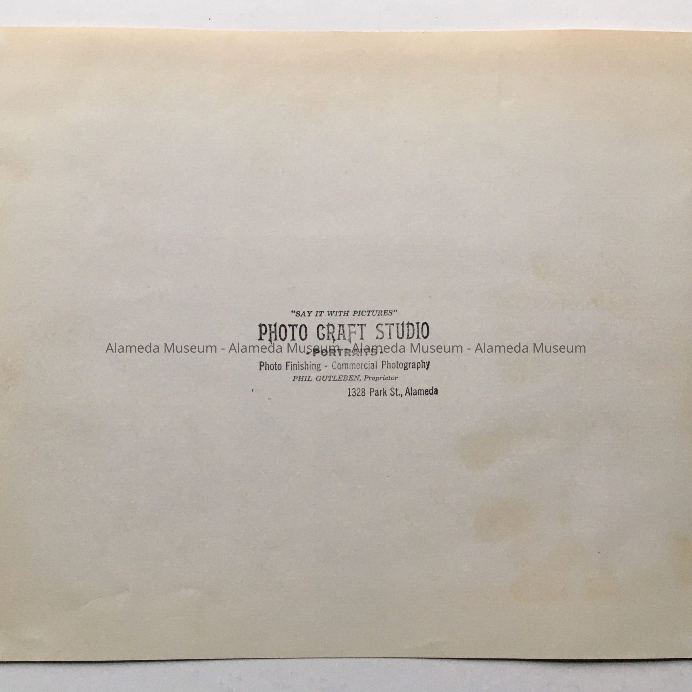 Description: Composite glossy photograph of small black and white photographs of headshots of children, two with names written on the reverse, of the others, all but three with typed names on a separate piece of paper. Stamped on the reverse: Photo Craft Studio, 1328 Park St., Alameda, Phil Gutleben, Proprietor.
