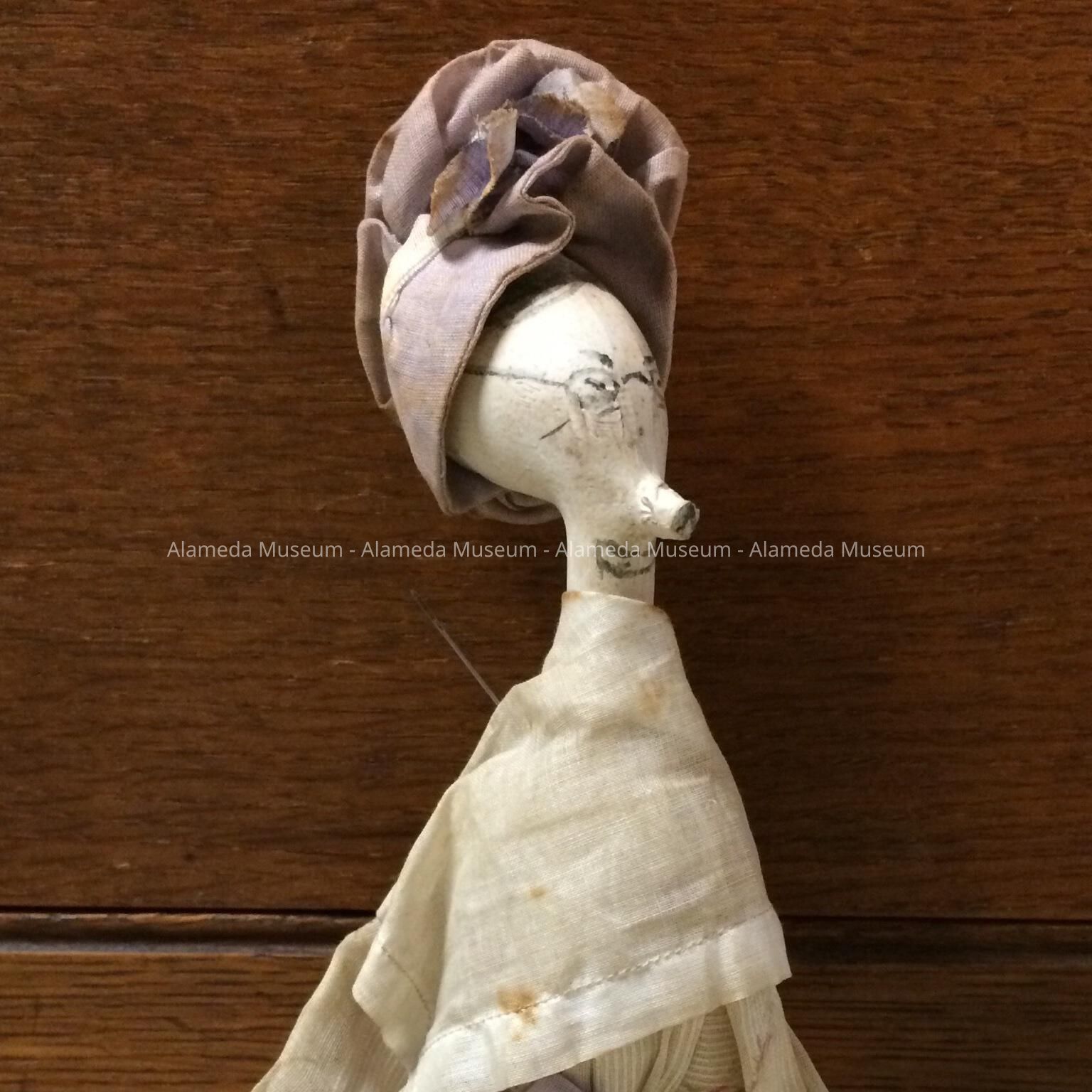 History of Object: Interesting darning doll that belonged to Eleanor Clark, and was part of her doll collection. Eleanor, past Executive Director of the Alameda Branch of the American Red Cross, is also a member of an early Alameda family, and a docent in the Alameda Historical Museum.