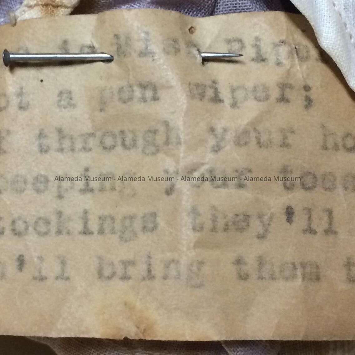 4/9/2020 MvL: pinned to the back is a paper label with the following rhyme: