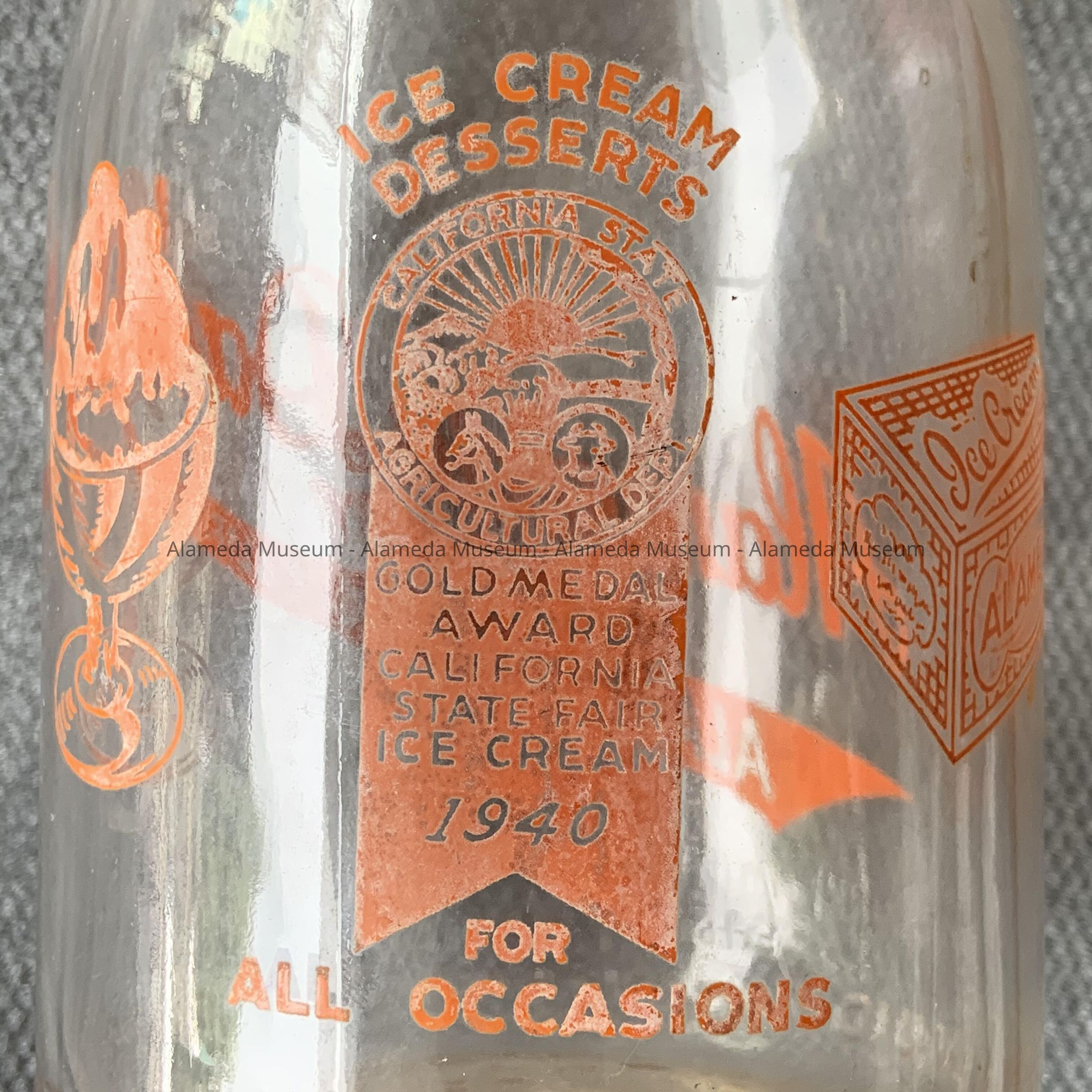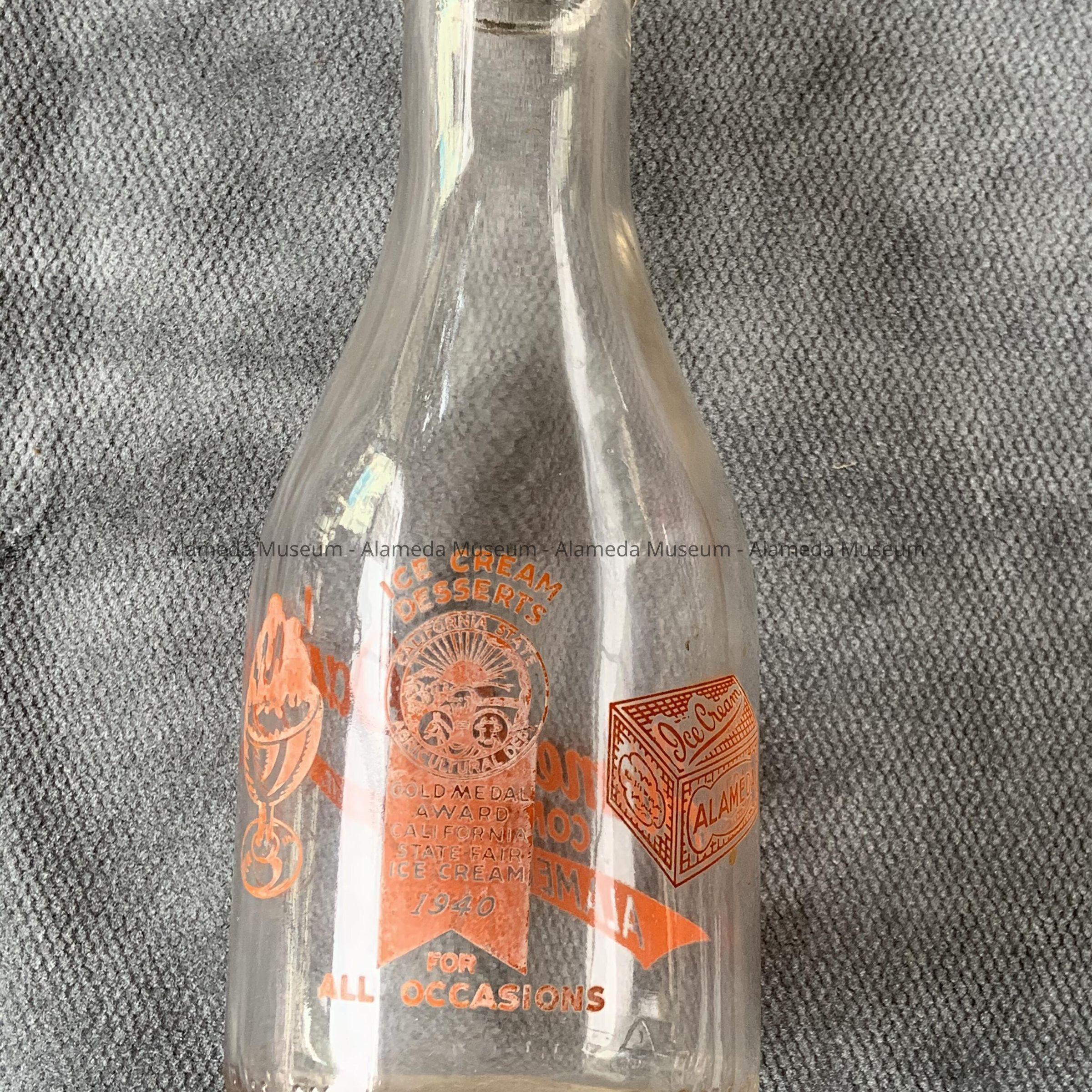 History of Object: MILK BOTTLE FROM THE ALAMEDA DAIRY COMPANY, ALAMEDA, CALIFORNIA.
