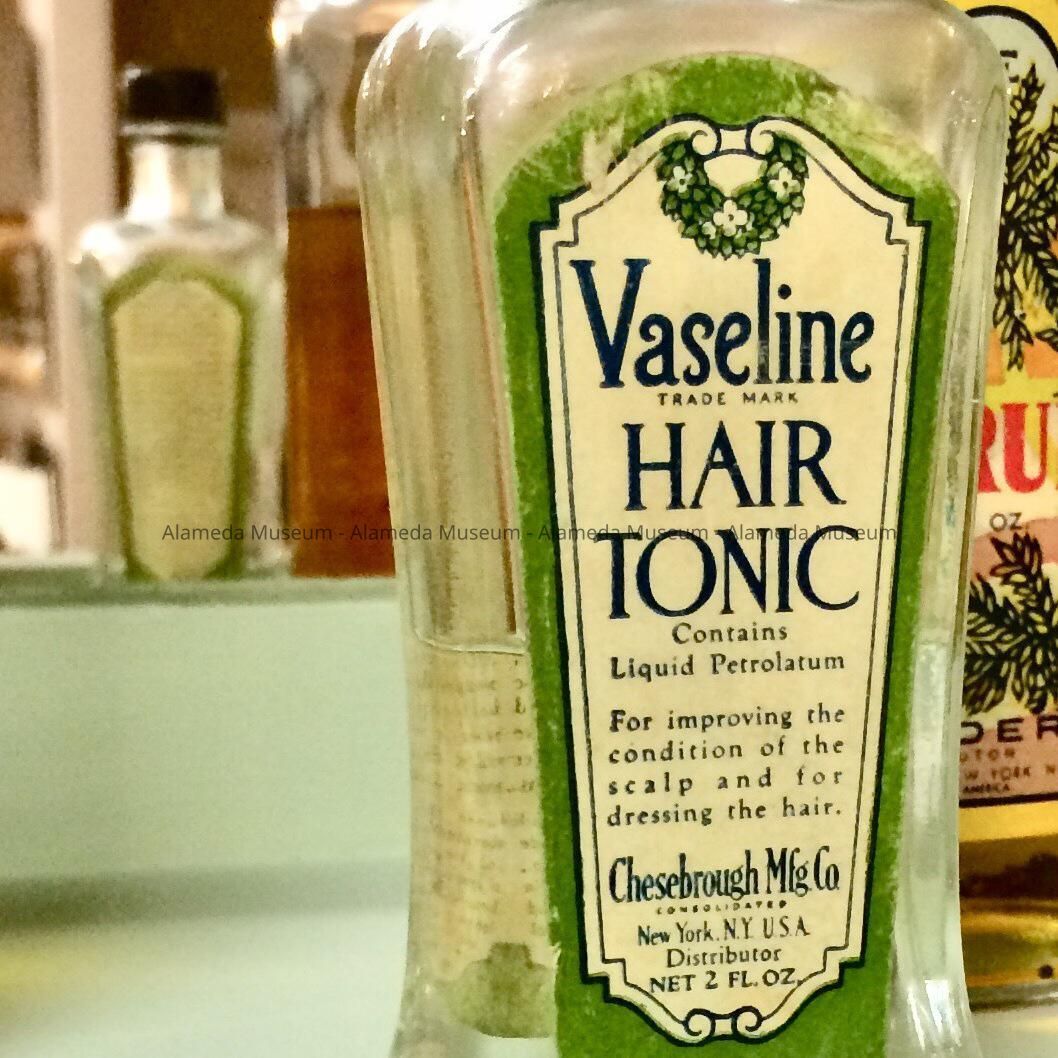 BOTTLE OF VASELINE HAIR TONIC, WITH CONTENTS, FROM THE JORDAN FAMILY.