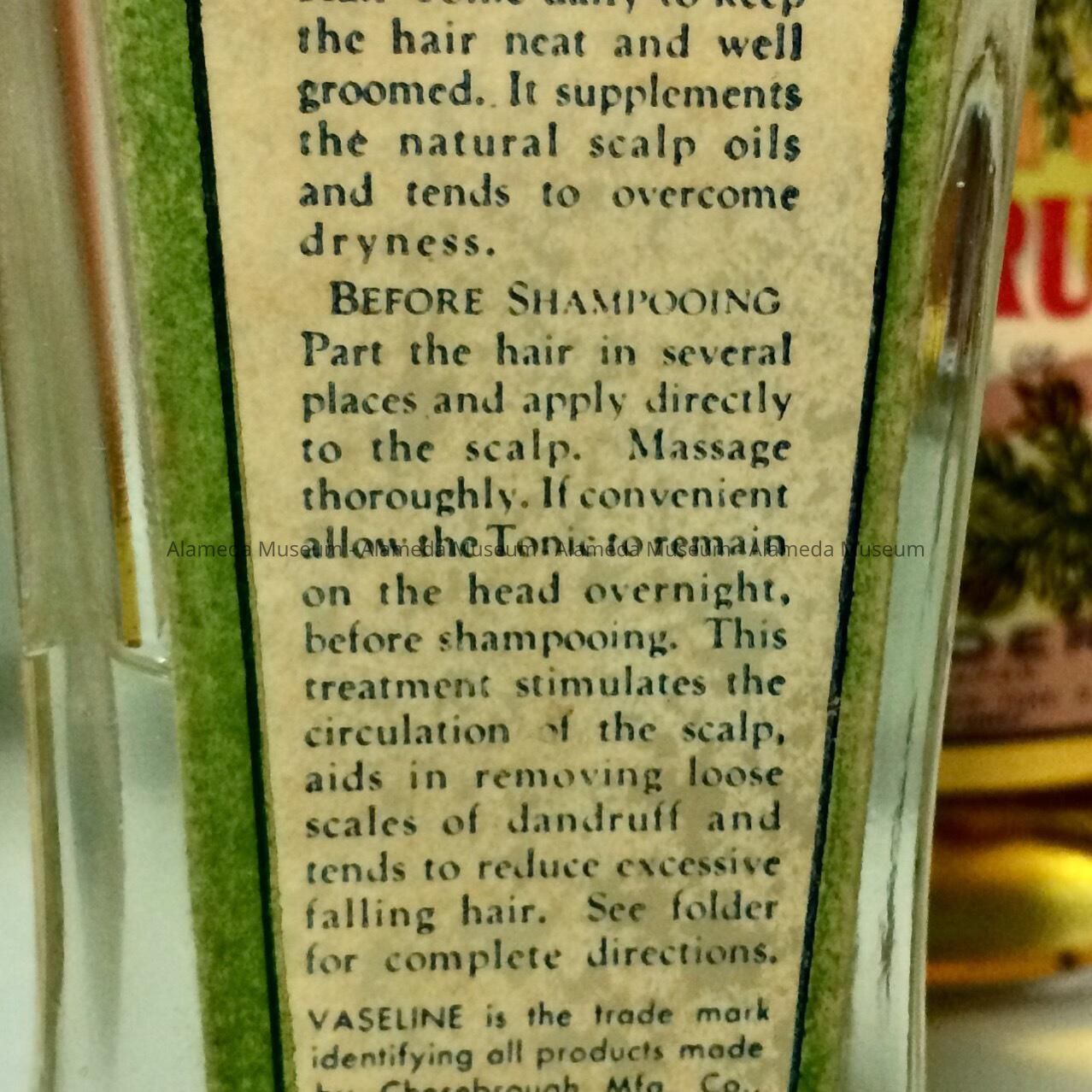 Clear Glass bottle of Vaseline Hair Tonic of the Jordan familyEntry/Object ID