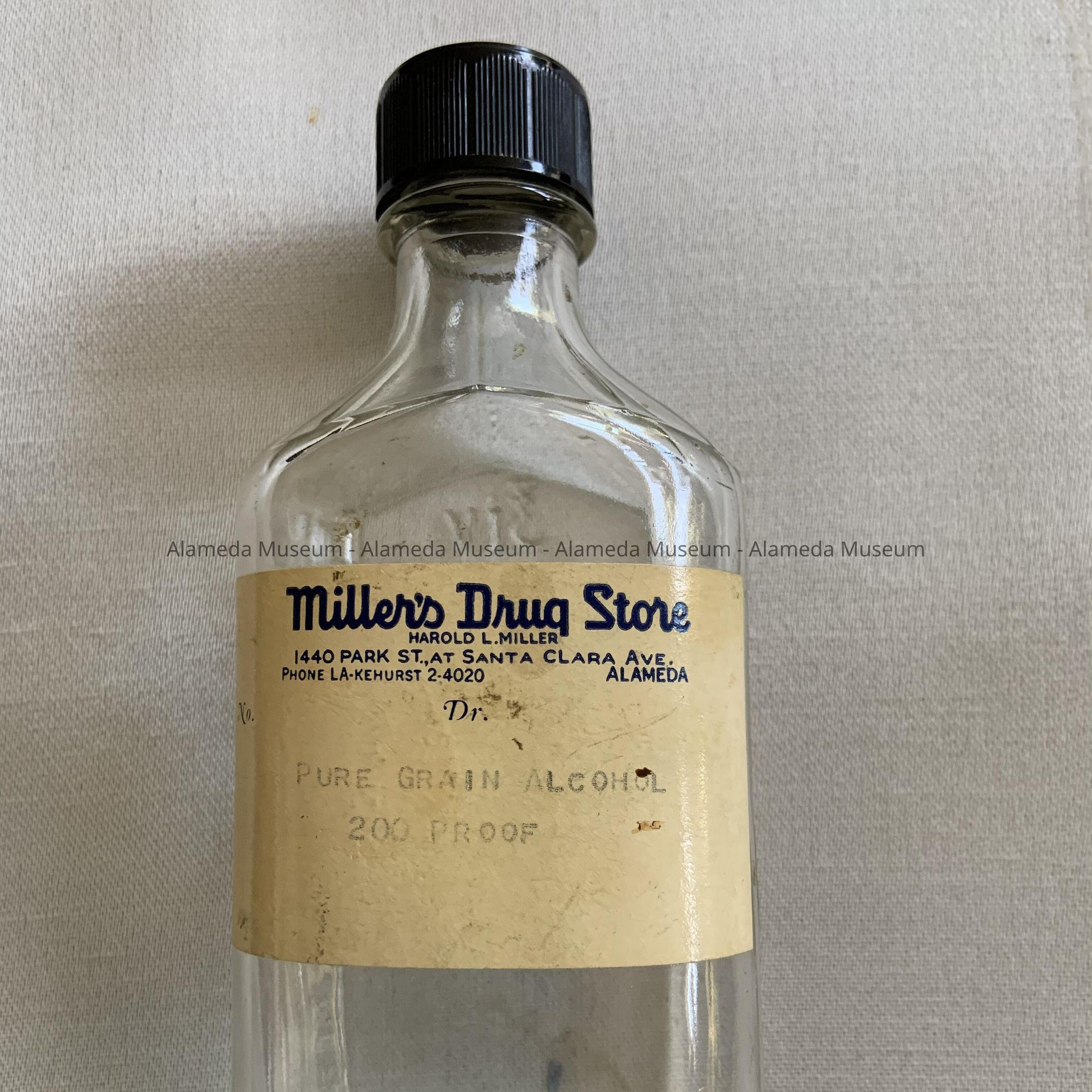 History: Medicine bottle from Miller's Pharmacy, 1440 Park Street, Phone LA2-4020