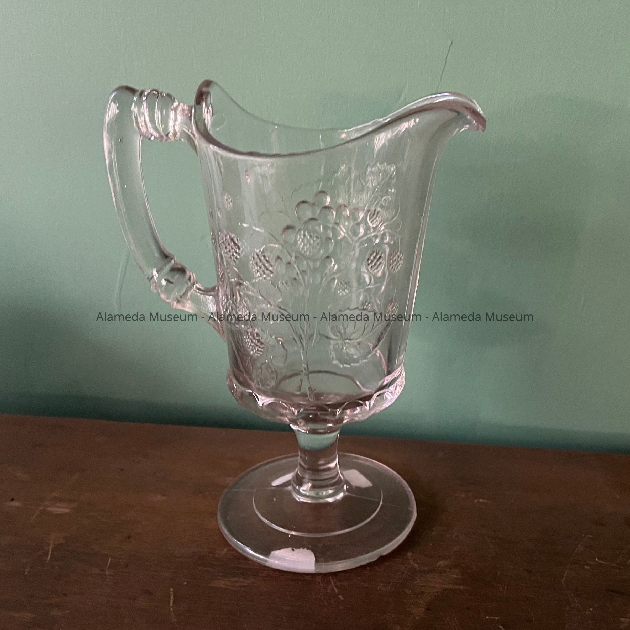 Clear glass pitcher in grape, pear and raspberry pattern, c. 1890Entry/Object ID