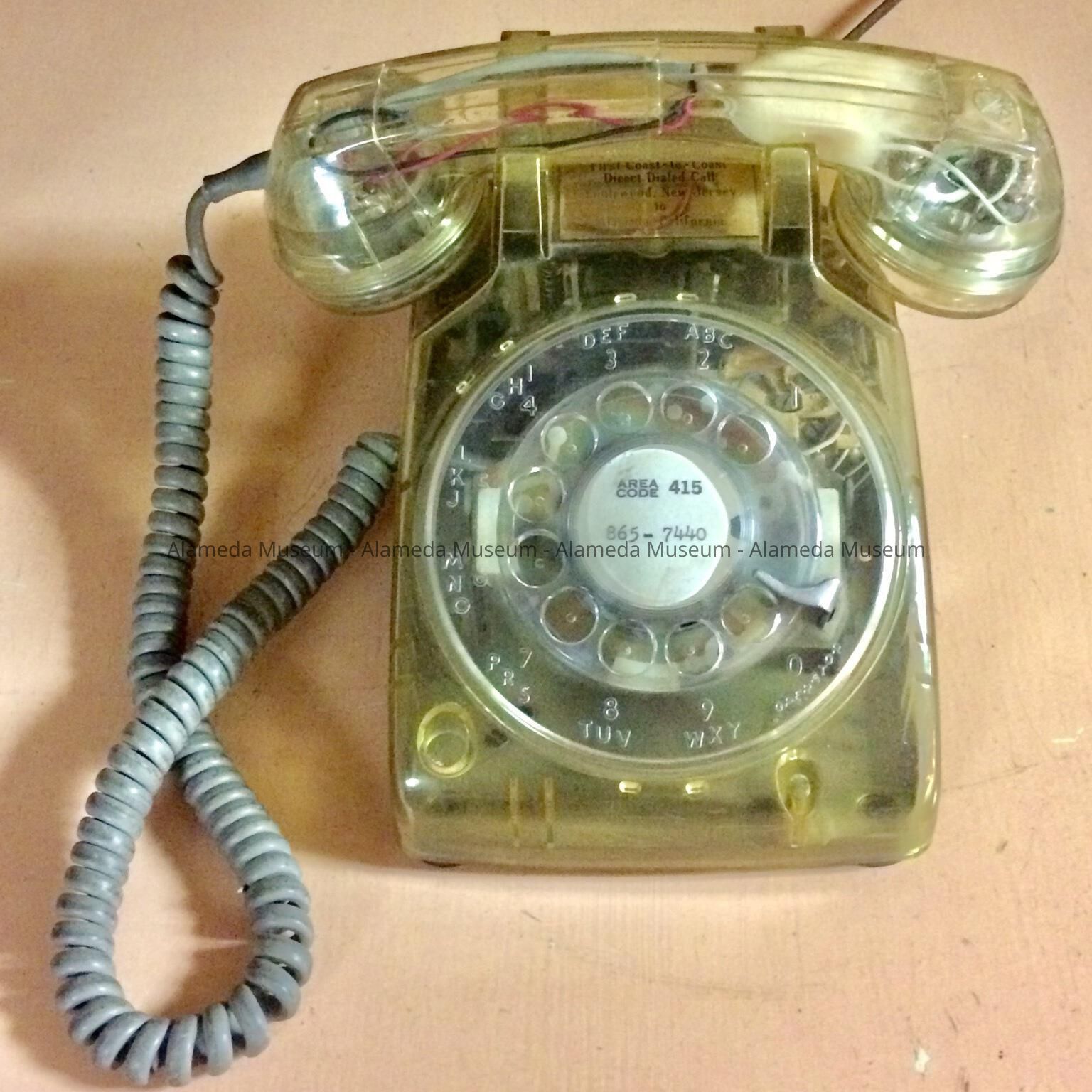 Clear plastic Bell Systems telephone from Anniversary Dialed Call, 1976Entry/Object ID