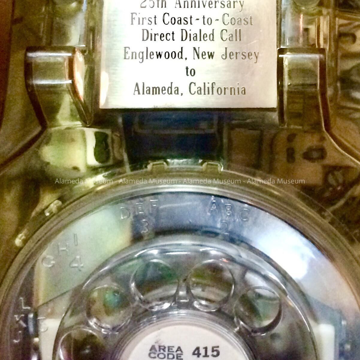 Telephone with brass plaque dated November 10, 1976 25th Anniversary First Coast to Coast Direct Dialed Call, Englewood NJ to Alameda, CA.