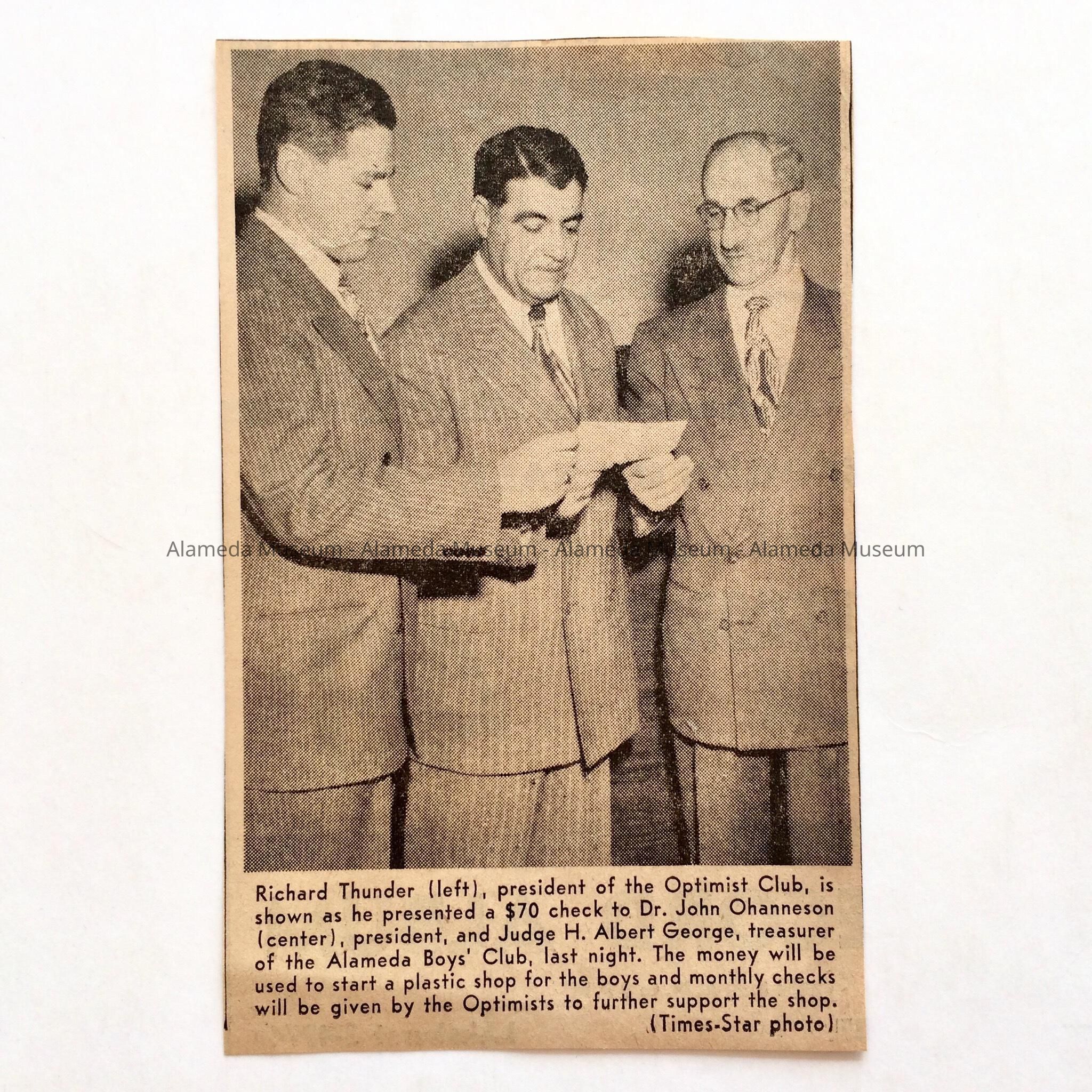clipping about a check from the Alameda Boys Club, c. 1960Entry/Object ID