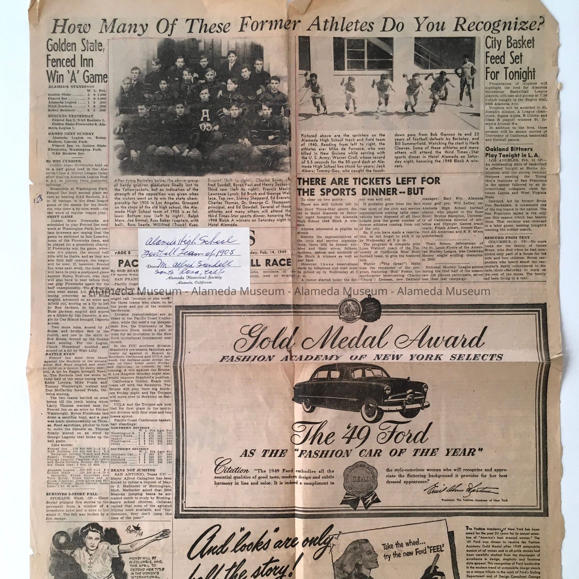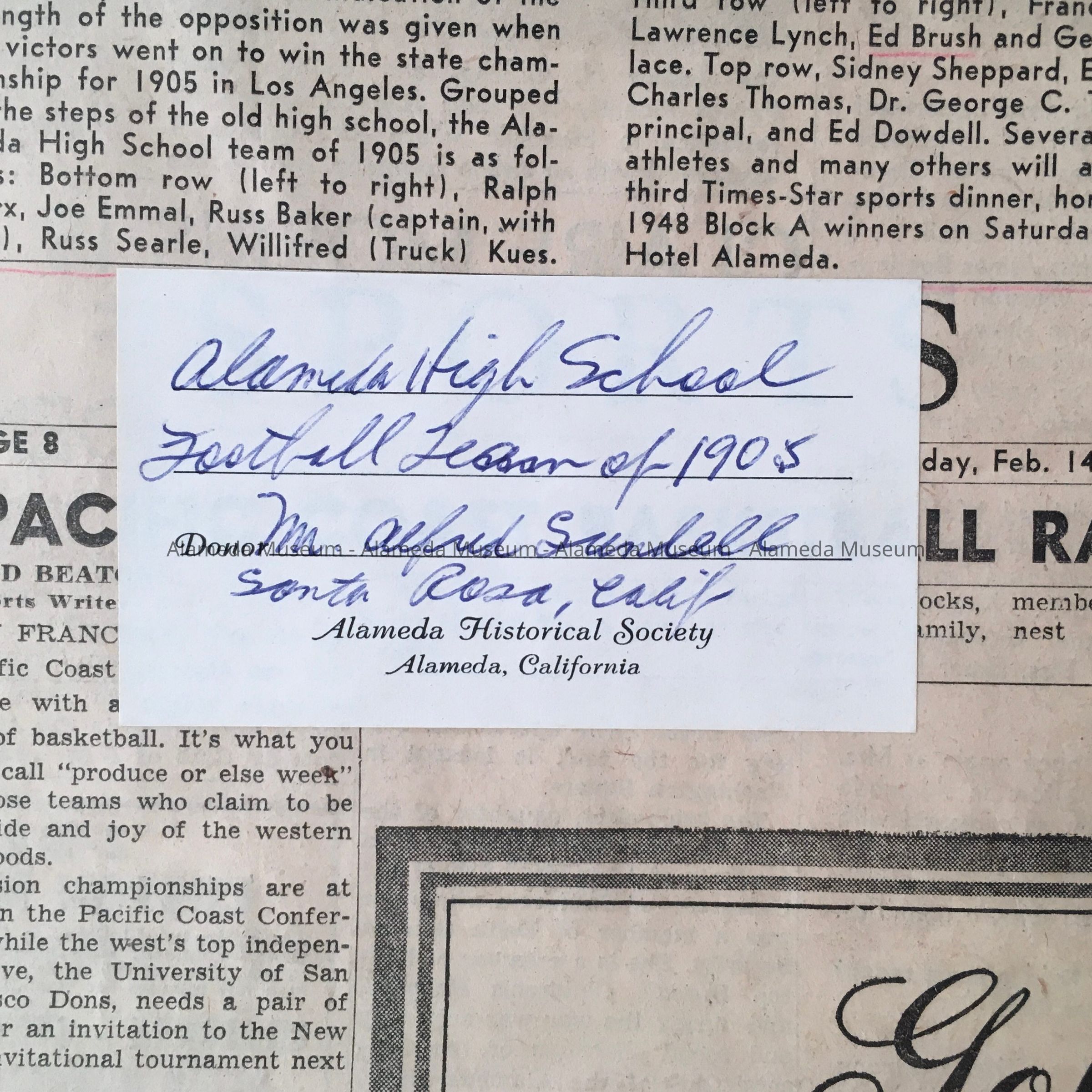 Clipping about Alameda High School athletes from 1905 and 1940, 1949Entry/Object ID