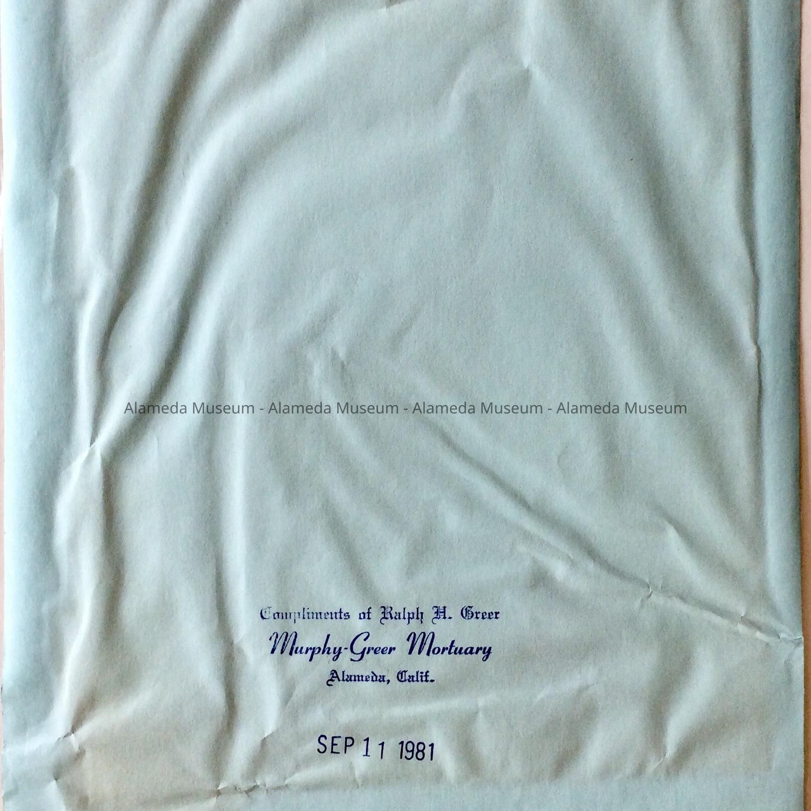 DESCRIPTION: AN ILLUSTRATED NEWSPAPER SEALED IN PLASTIC, ISSUED BY THE MURPHY-GREER MORTUARY, ALAMEDA. PICTURED ARE MEMBERS OF THE ALAMEDA VICTORIAN PRESERVATION SOCIETY BOARD. THE TOUR WAS CONDUCTED IN 1981.