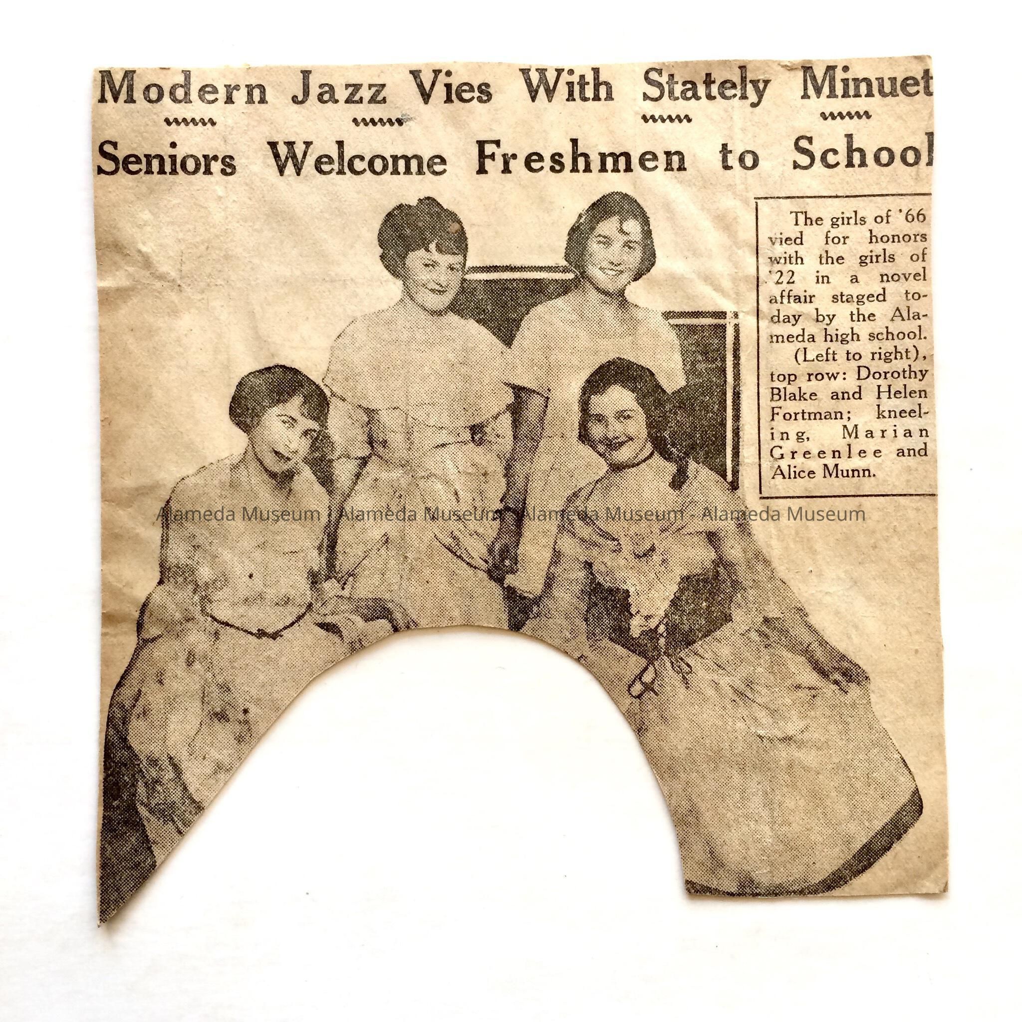 Clipping about student performances at Alameda High School, 1922Entry/Object ID
