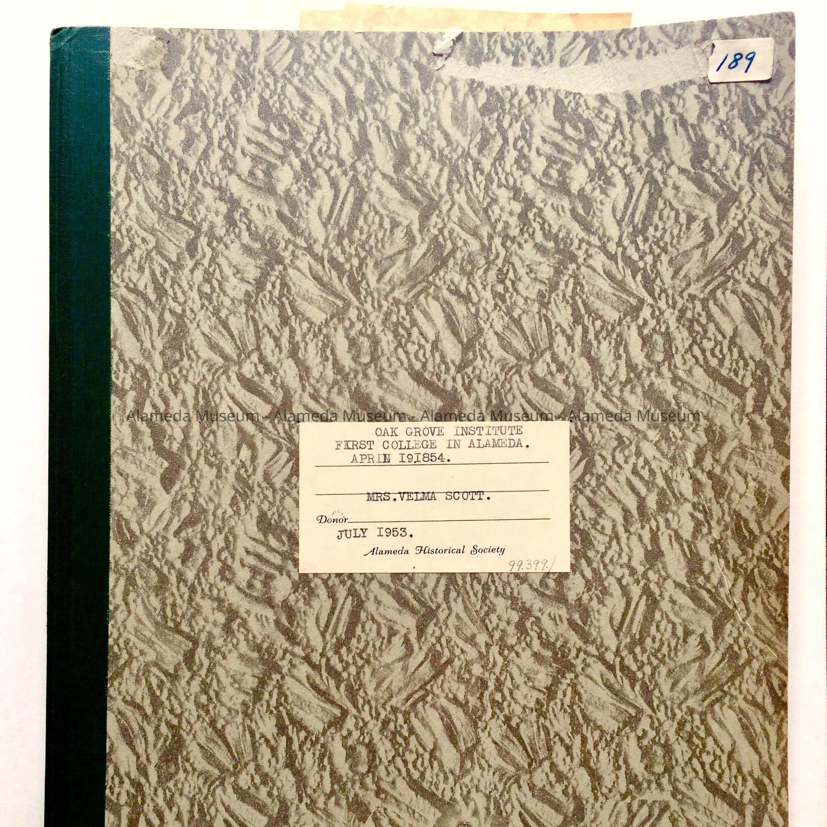 History given to the Alameda Historical Society in July 1953, number 189, and never catalogued.