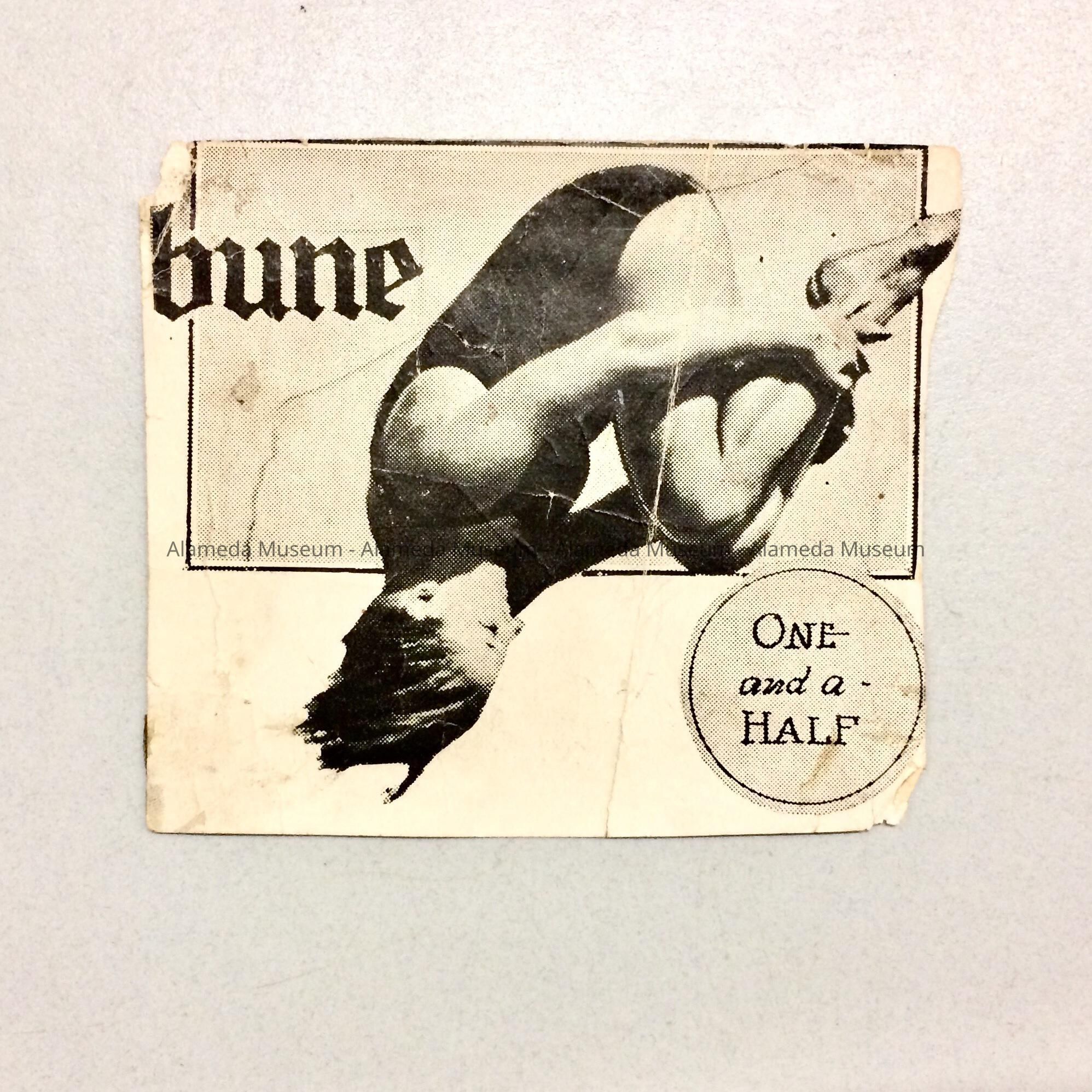 9/12/2021 MvL: clipping has the text ‘bune’, presumably the (Oakland?) Tribune, and in a circle the text: ‘One and a half’; presumably because bunny did a one and/a-half turn somersault dive.