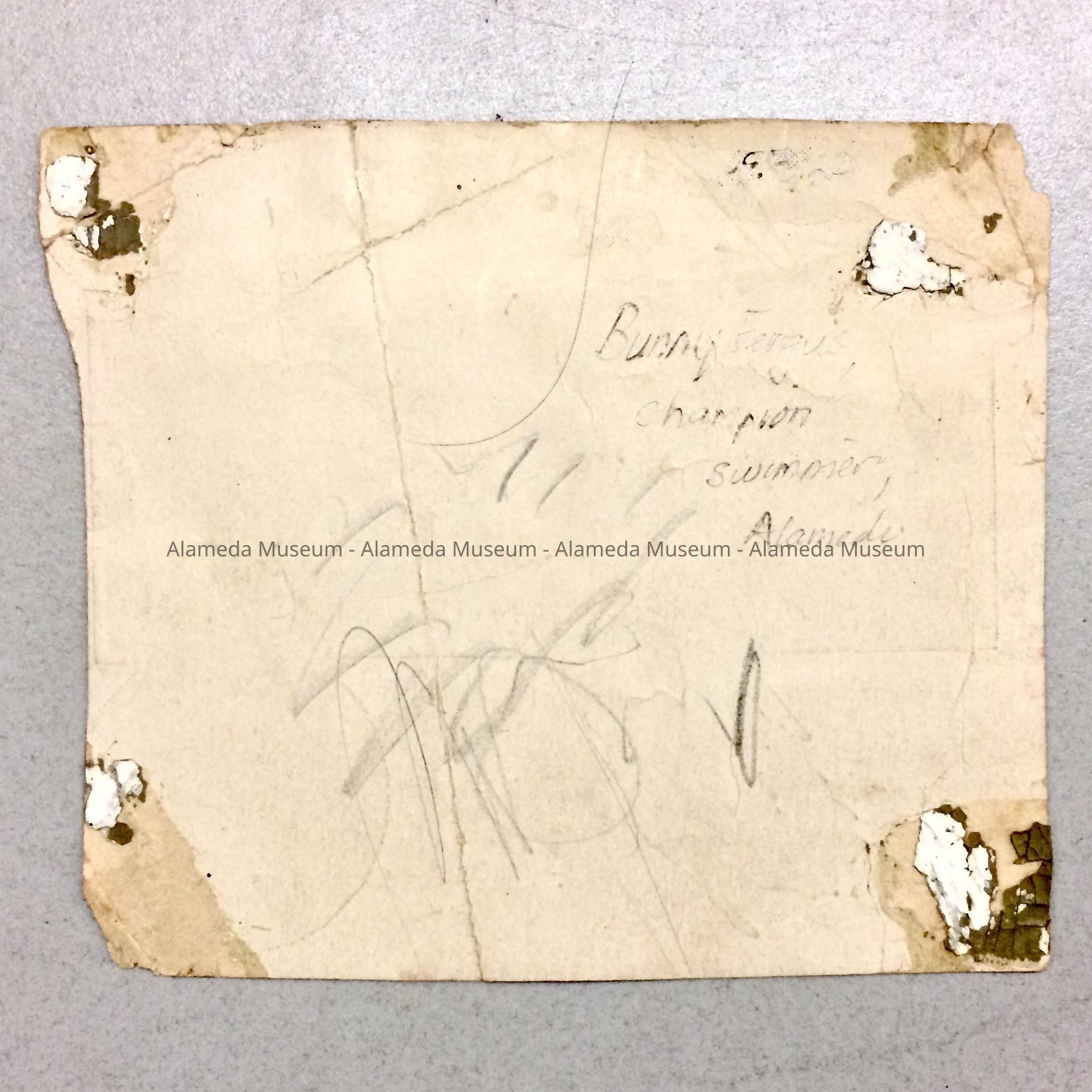 Verso states (in handwriting of curator G.G.) ‘Bunny Ferguson champion swimmer, Alameda’.