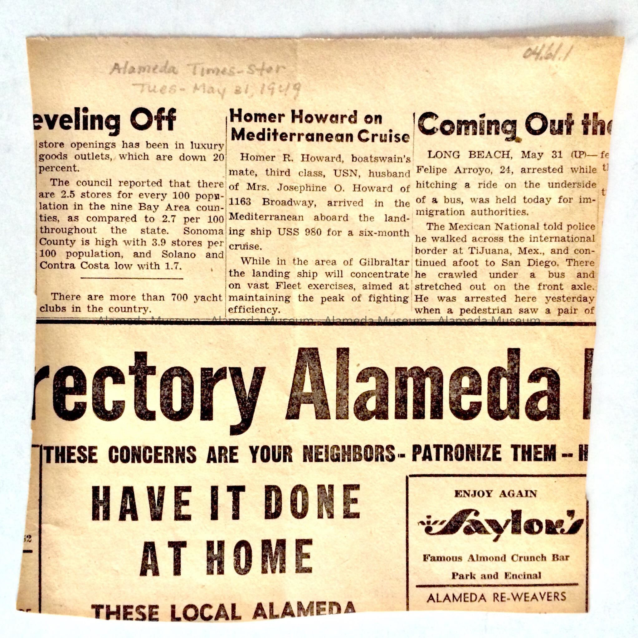 Clipping of 1949 Pioneer Day Celebration in AlamedaEntry/Object ID