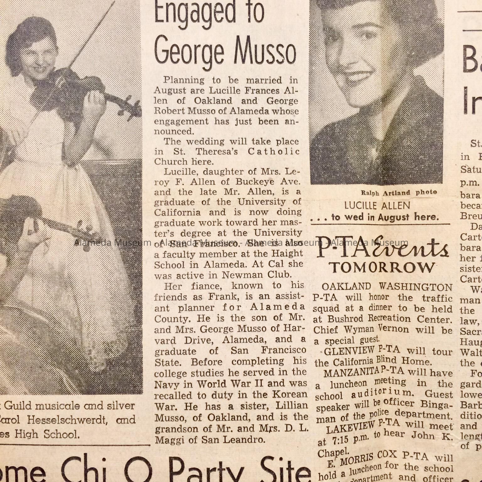 Newspaper clipping from the Oakland Tribune dated May 3, 1957 concerning the closing of the Southern Pacific Freight and Ticket Office at the gore of Tilden and Lincoln Avenues. The building was later demolished. It served as a freight and ticket office for the Southern Pacific during the period of steam locomotives.
