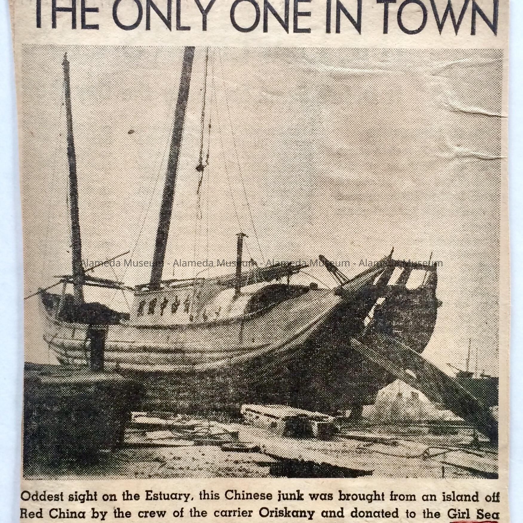 Clipping 'The Only One in Town' about repair of a Chinese Junk, 1958Entry/Object ID