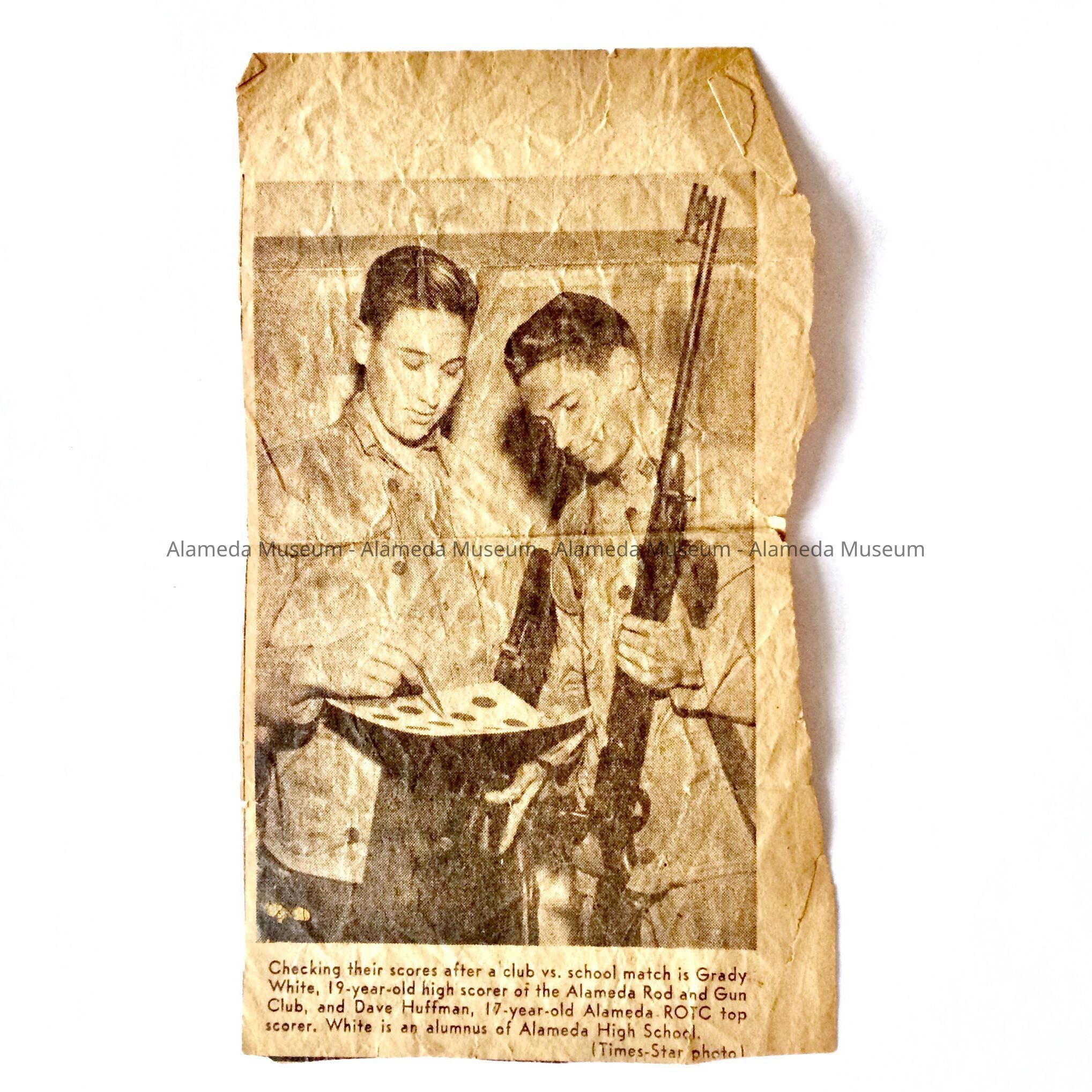 Clipping with photo of Grady White, High scorer Alameda Rod and Gun Club, c. 1948Entry/Object ID