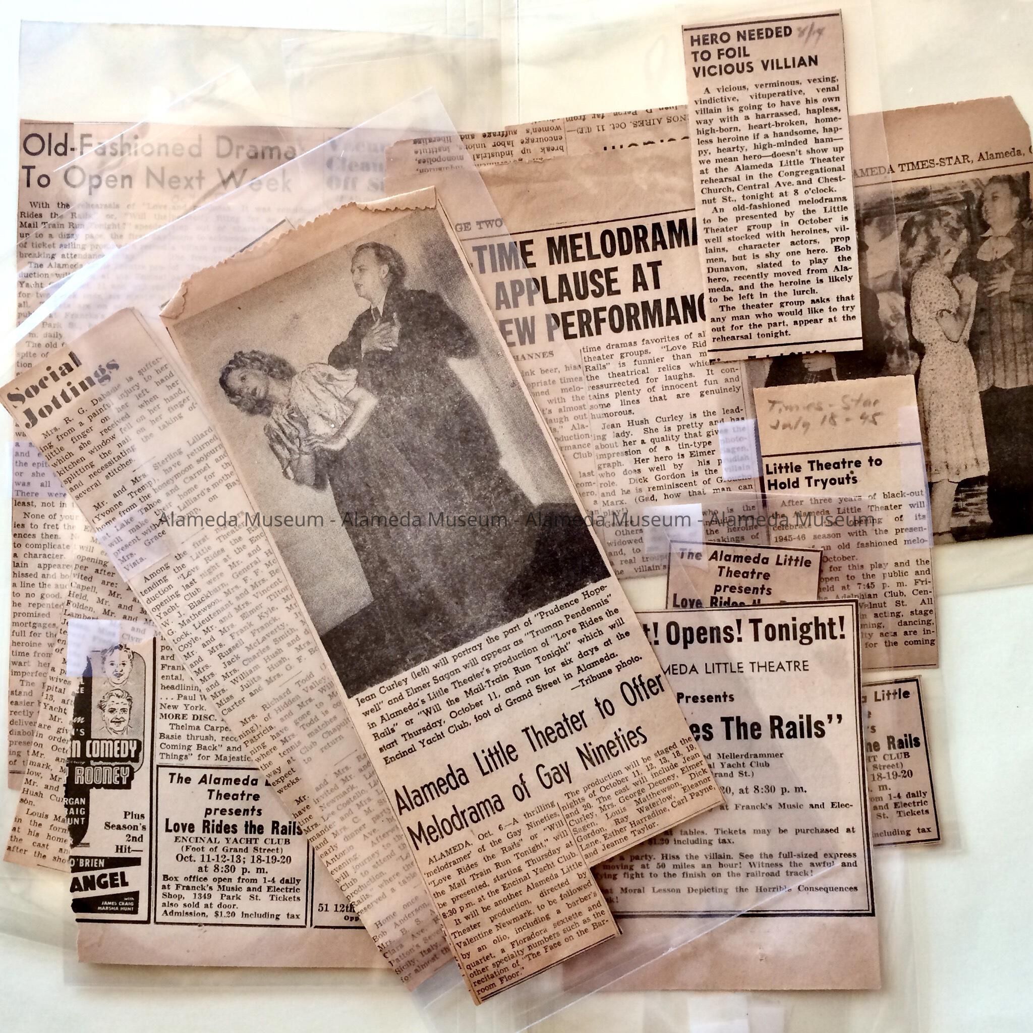 History of Object: NEWSPAPER CLIPPINGS CONCERNING THE PRODUCTIONS AT THE LITTLE THEATRE IN ALAMEDA.