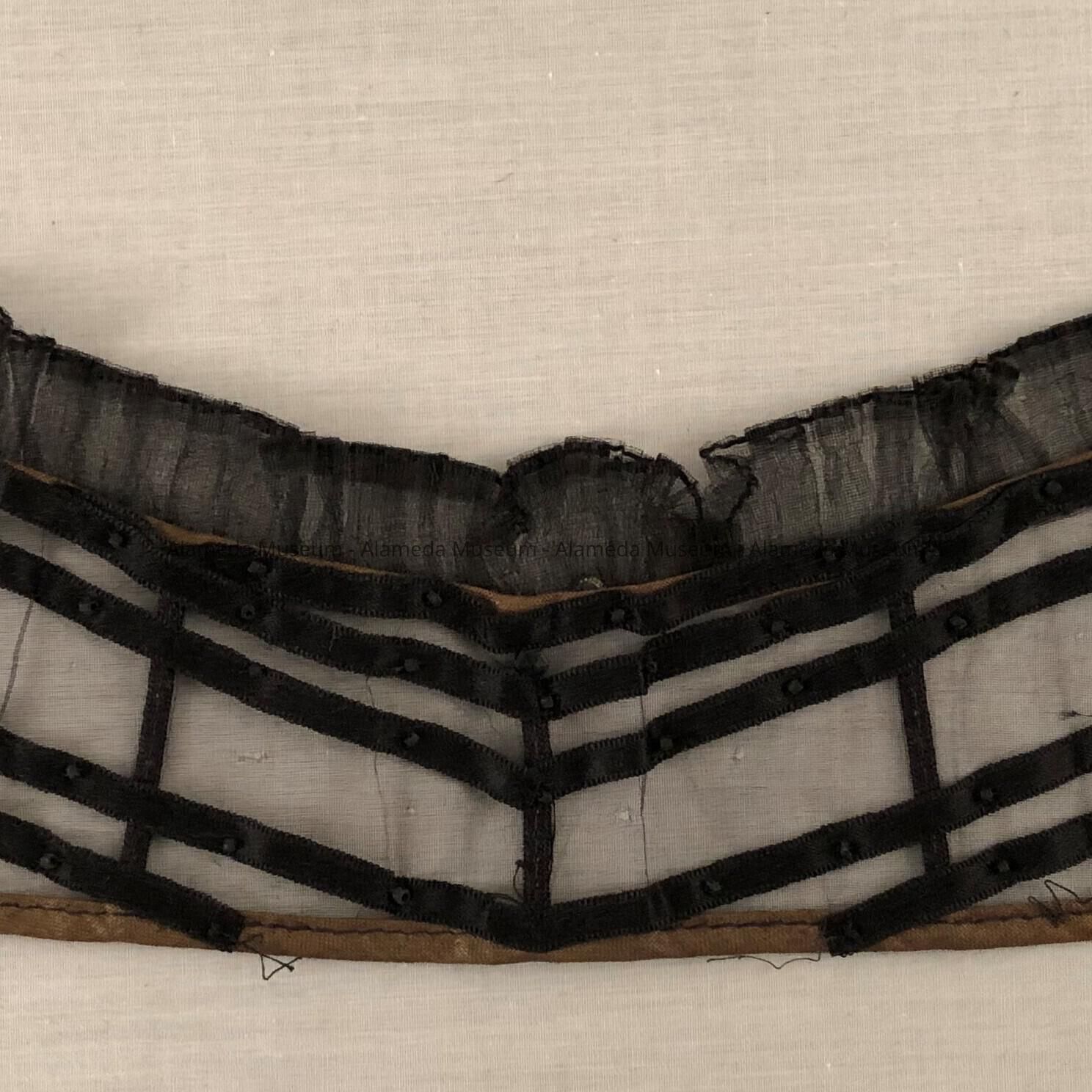 COLLAR WORN BY ELEANOR LINE (NEE) NERTEMAN. MRS LINE WAS A MEMBER OF AN EARLY ALAMEDA FAMILY WHO PURCHASED A HOME AT 2115 PACIFIC AVENUE, ALAMEDA, IN 1889. SHE ALSO ATTENDED LOCAL SCHOOLS AND WAS THE LATE MOTHER OF THE DONOR.