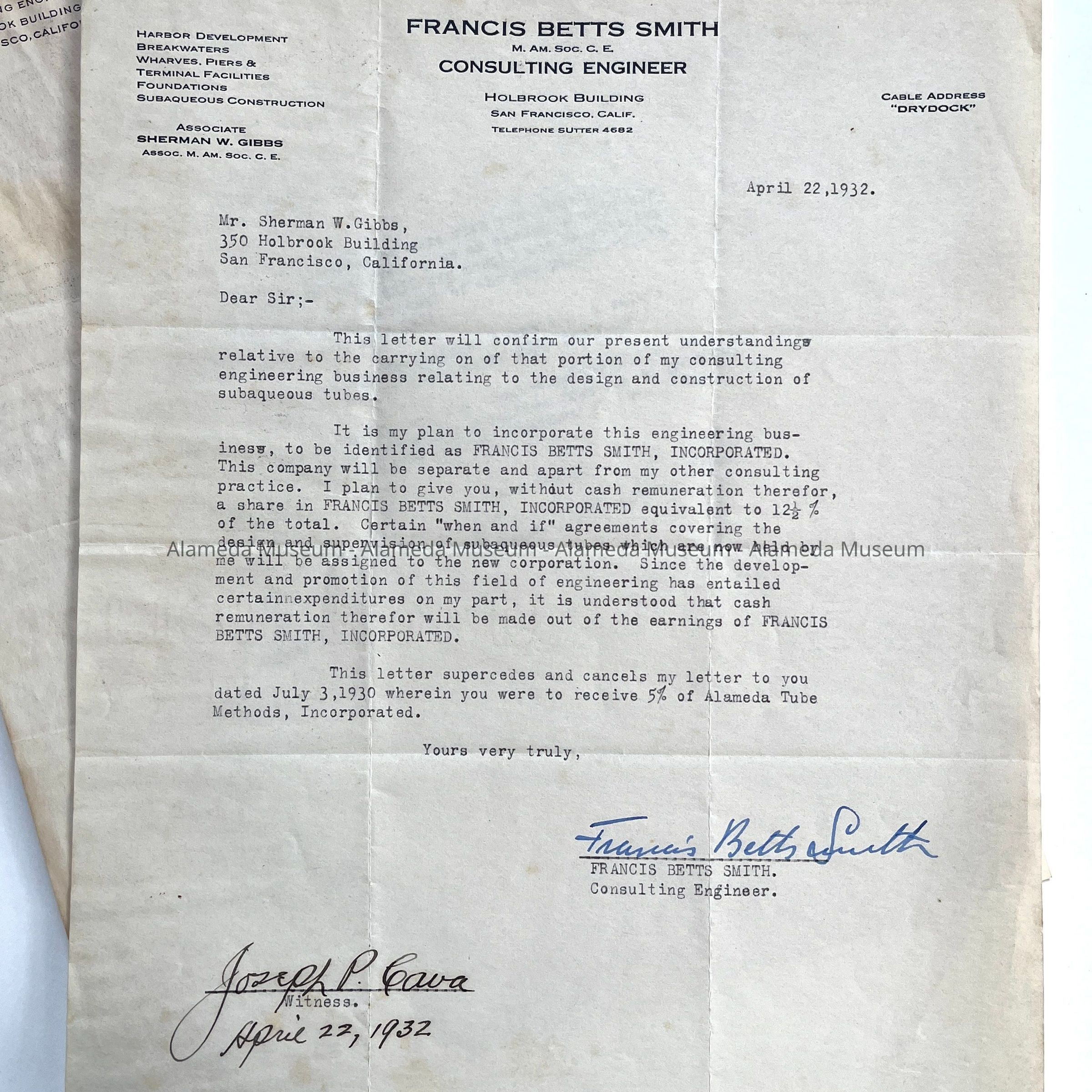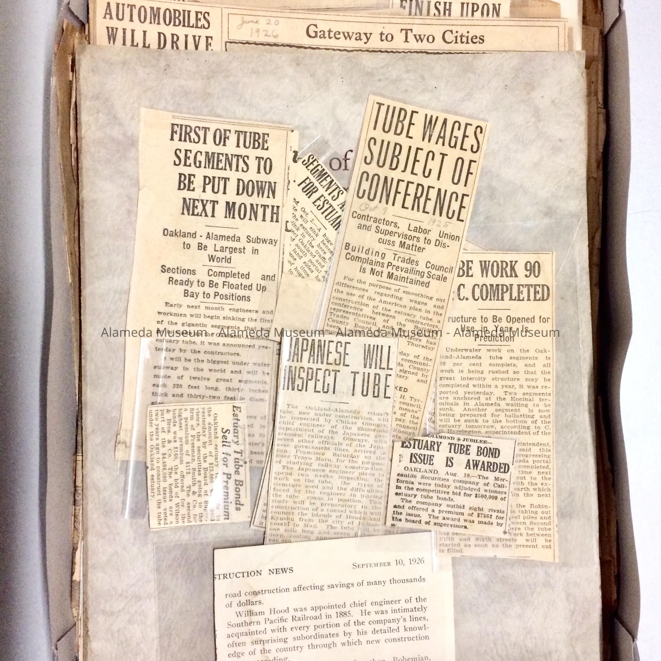 Description: A collection of newspaper clippings, some illustrated, and pages from professional magazines titled, "Engineering News and Western Construction News”. Also includes 3 pieces of correspondence from Francis Betts Smith, Consulting Engineer, to Mr. Sherman W. Gibbs. These publications illustrate the completion of the Posey Tube.