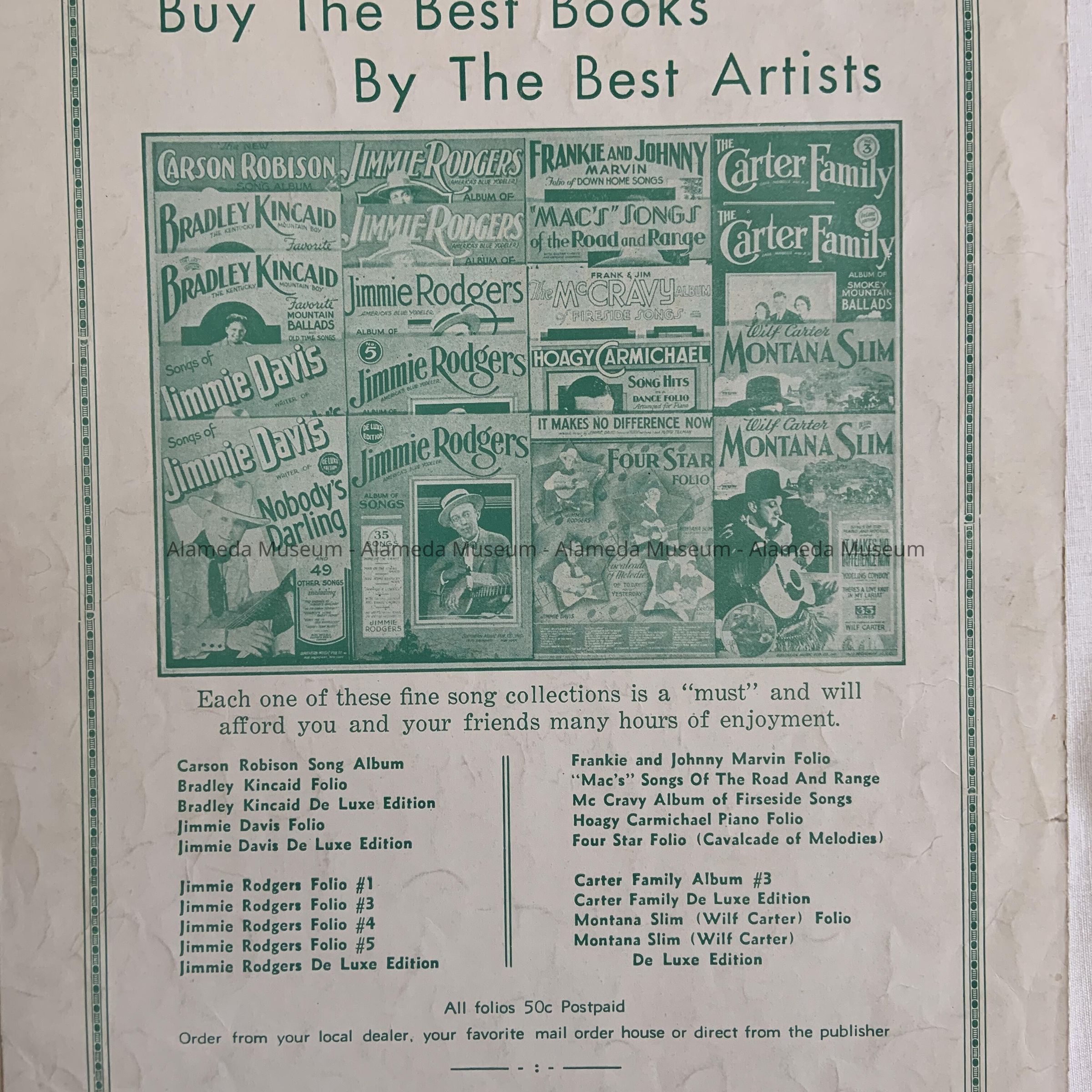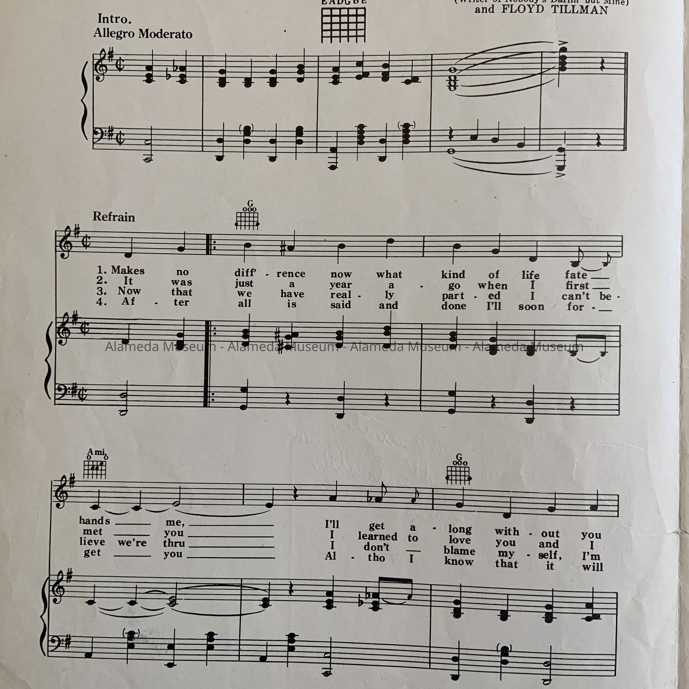 COLLECTION OF SHEET MUSIC FROM THE DONOR. THE COLLECTION WAS ACQUIRED WHEN SHE WAS A YOUNG WOMAN. HER FAMILY WERE LONGTIME RESIDENTS OF 2019 BUENA VISTA AVENUE, ALAMEDA, CALIFORNIA.