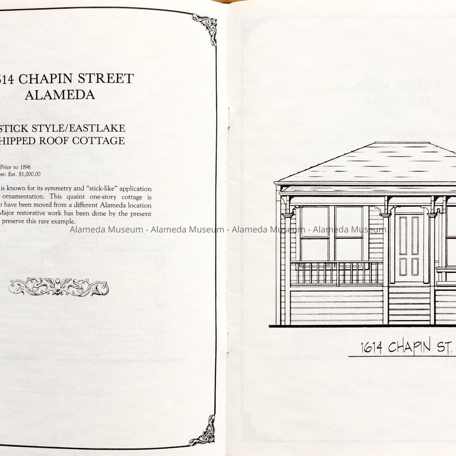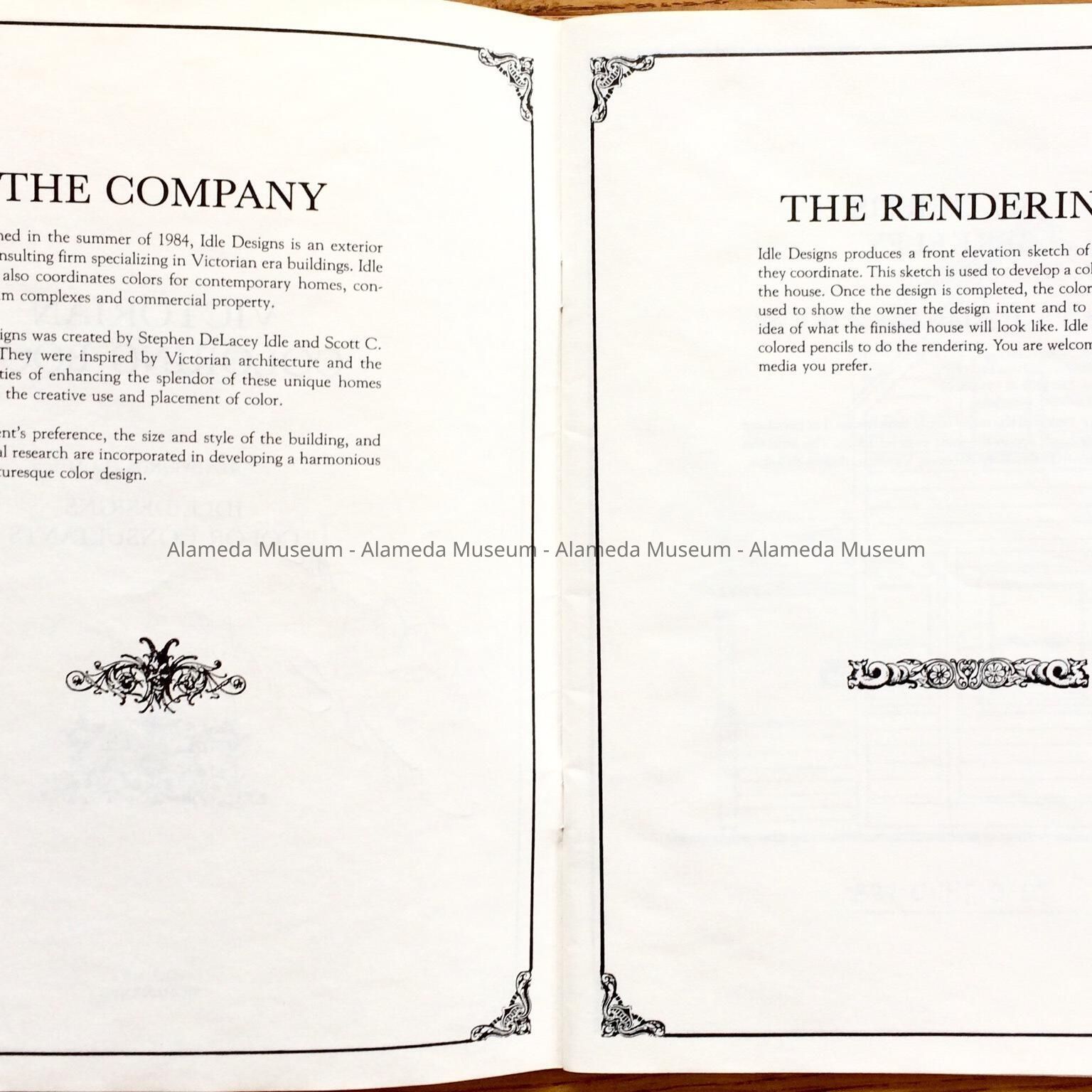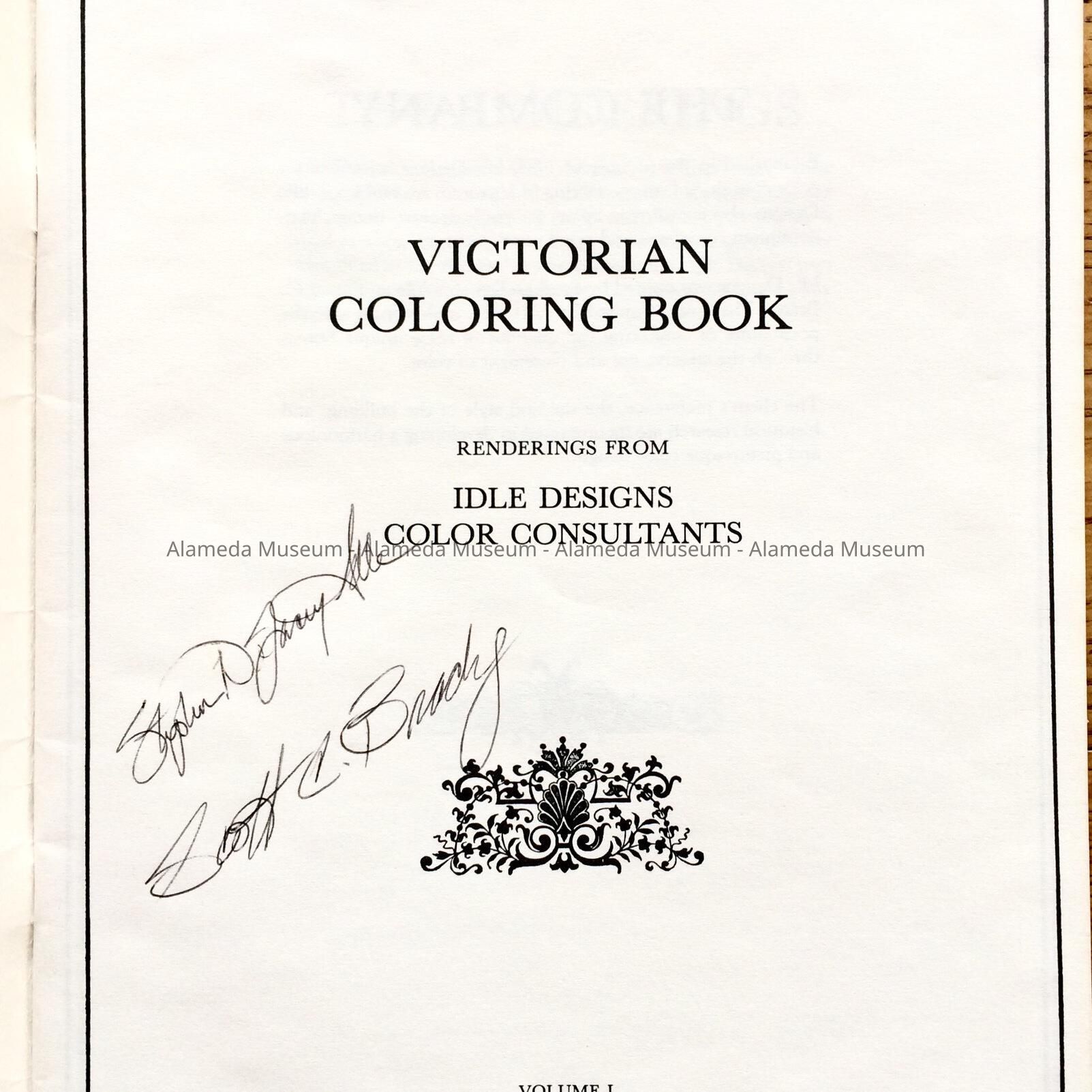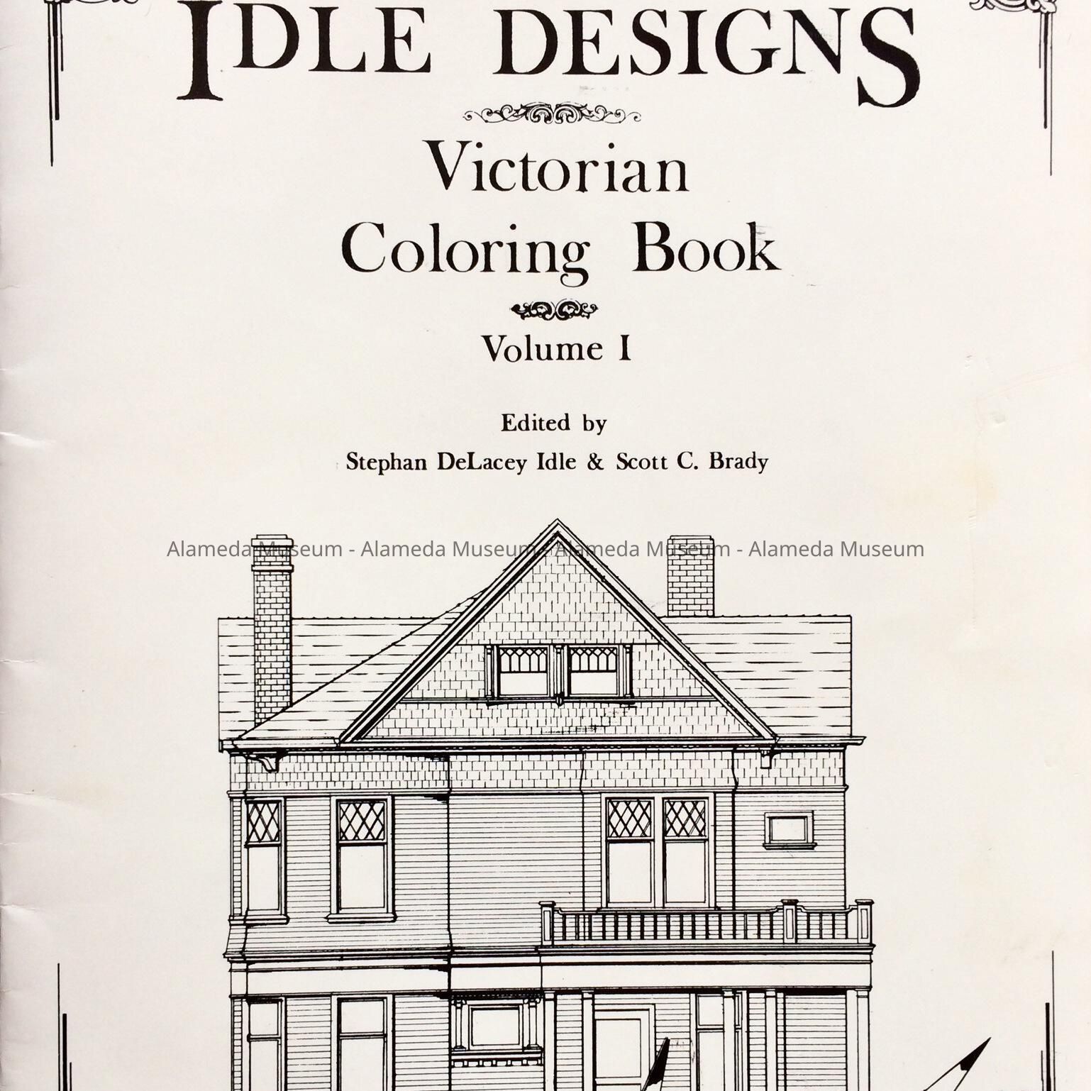 HISTORY OF OBJECT: A COLORING BOOK ILLUSTRATED BY THE AUTHORS, STEPHEN IDLE AND SCOTT BRADY, FEATURING LINE DRAWINGS OF VARIOUS VICTORIAN HOMES IN ALAMEDA. EACH HOUSE IS ANNOTATED WITH THE ARCHITECTURAL DESCRIPTION AND CONSTRUCTION DATE, AS WELL AS ADDRESSES.