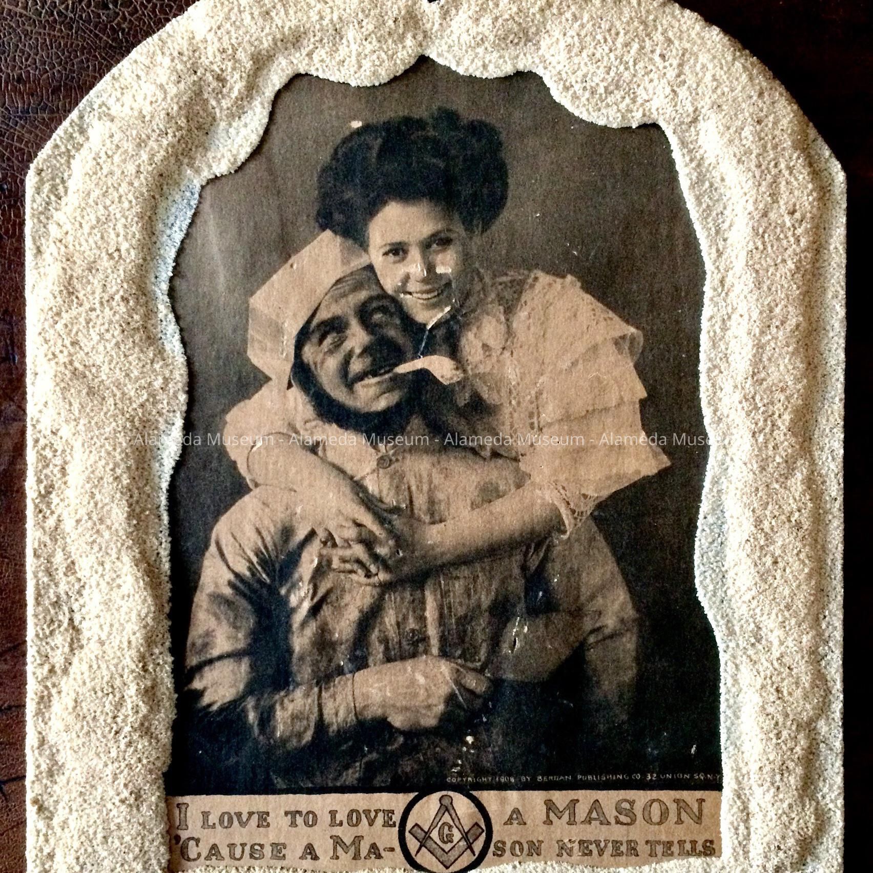 History of Object: Comic Masonic plaque which hung in the home of Bertha Krueger, 2269 Clinton Avenue. It originally belonged to her husband Frank.