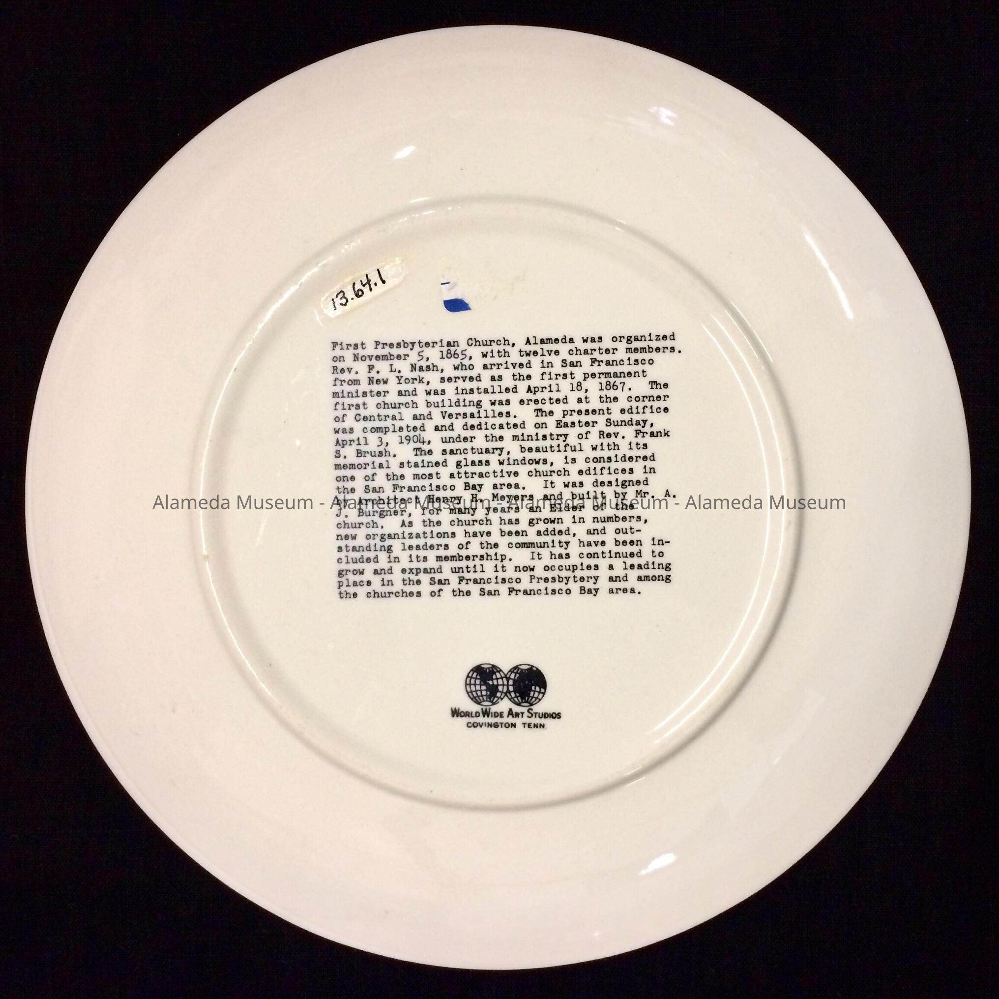 5/10/2021 MvL: text on back of plate: