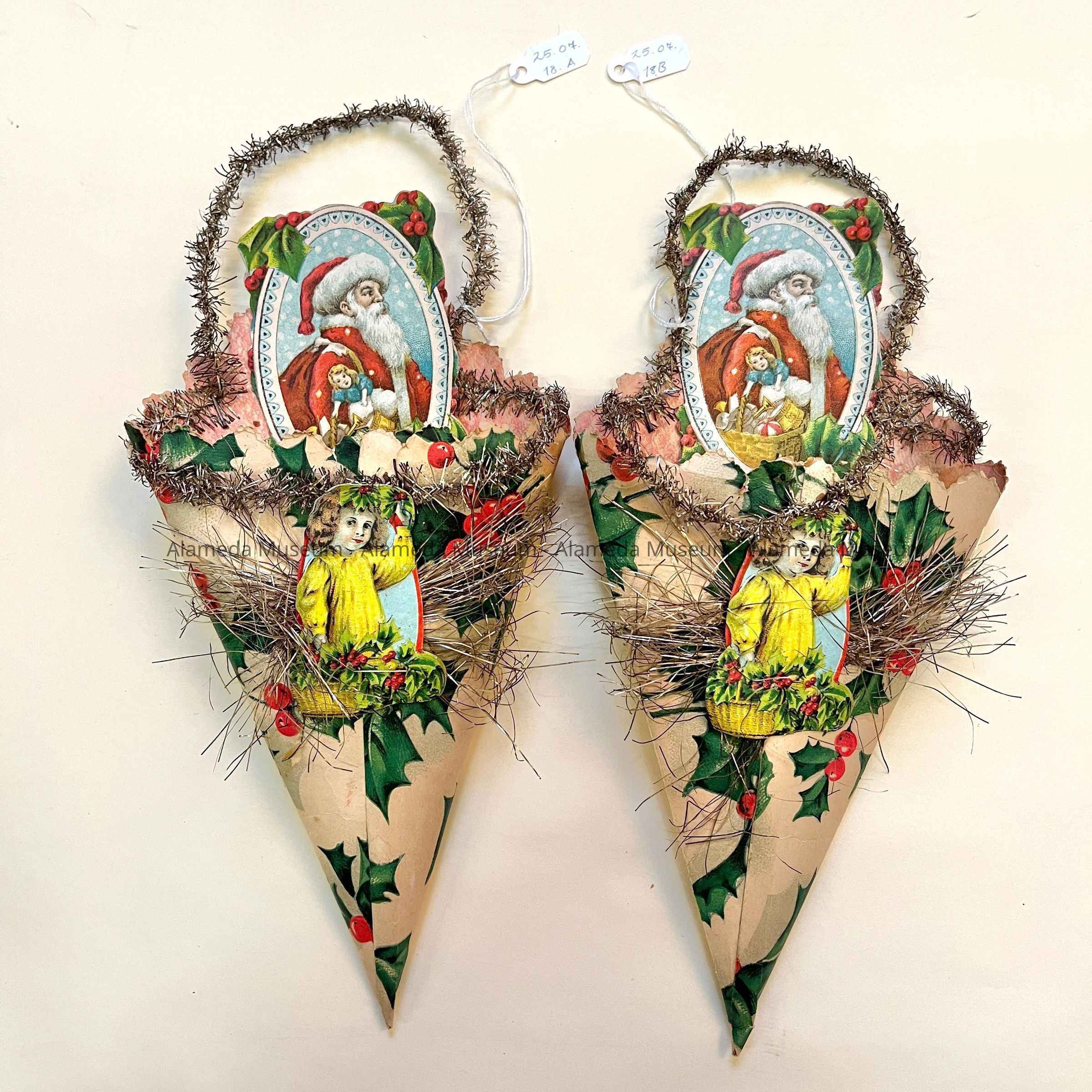 Cone Shaped Paper and Tinsel Christmas Decorations, 1950sEntry/Object ID