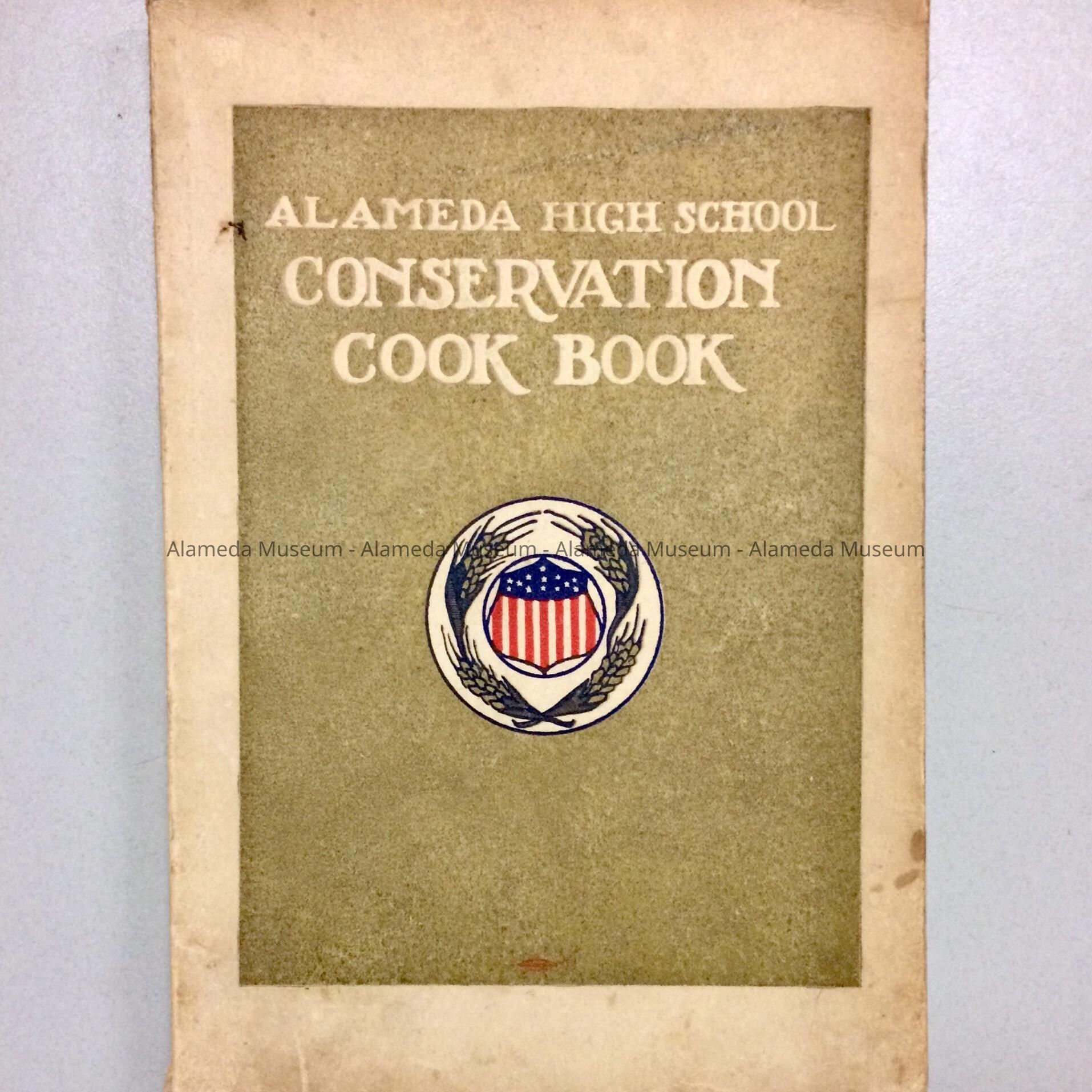 Description: Soft cover cookbook with bold printed caption "Alameda High School Conservation Cook Book" (on gold background).