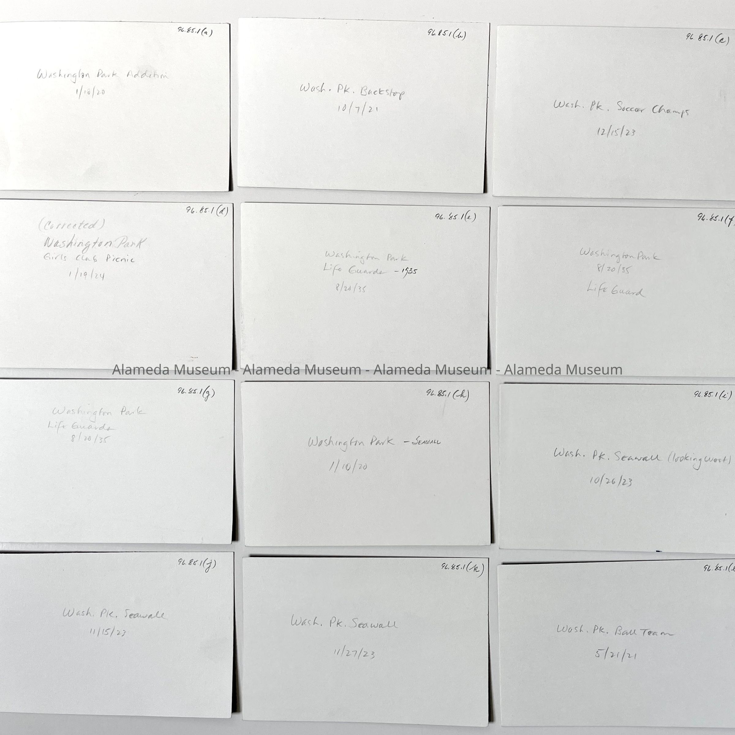 Contact prints by Dr. Vernon Rabbach of photos of Washington Park, 1920-1935
