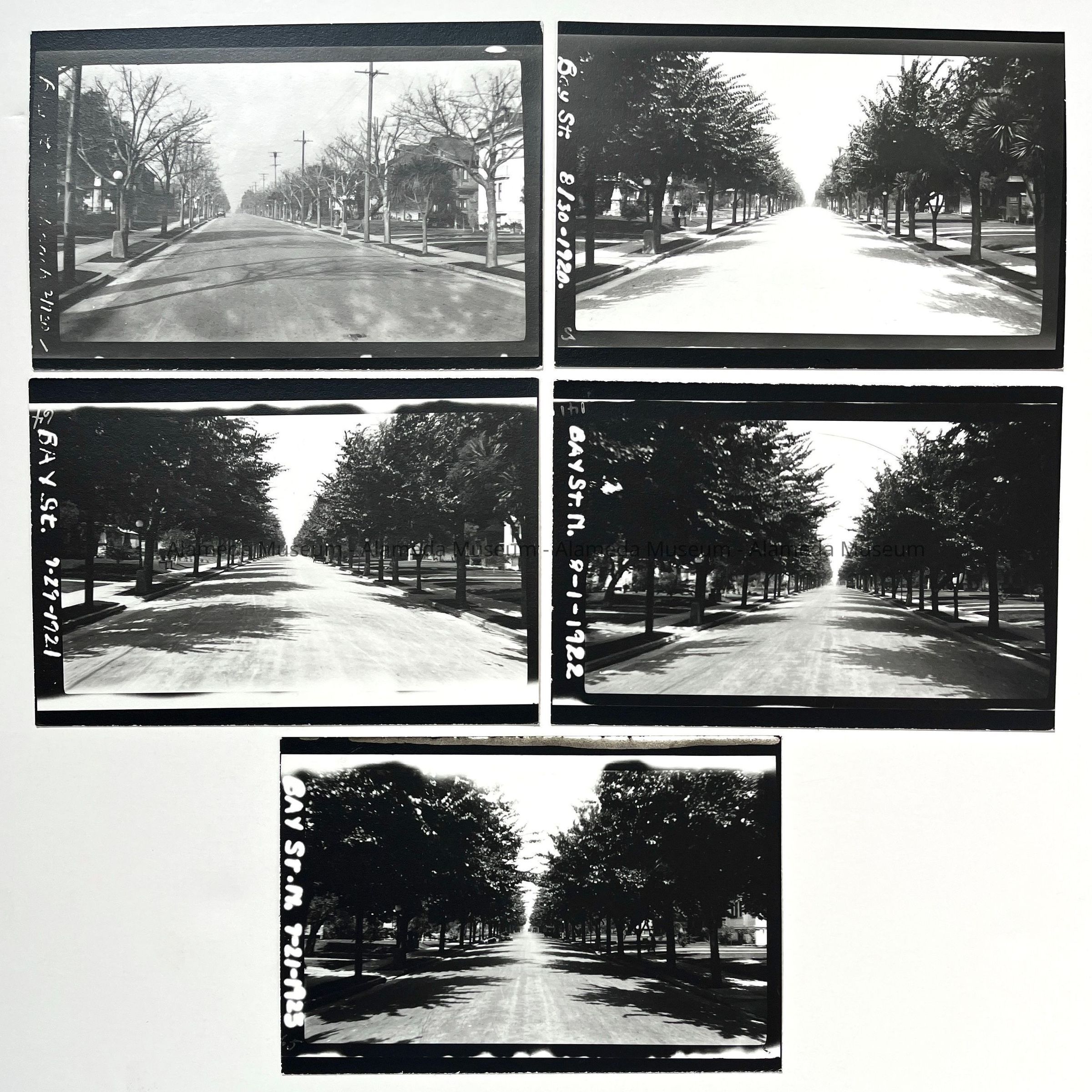 Contact prints of photos of Alameda Streets, 1920sEntry/Object ID