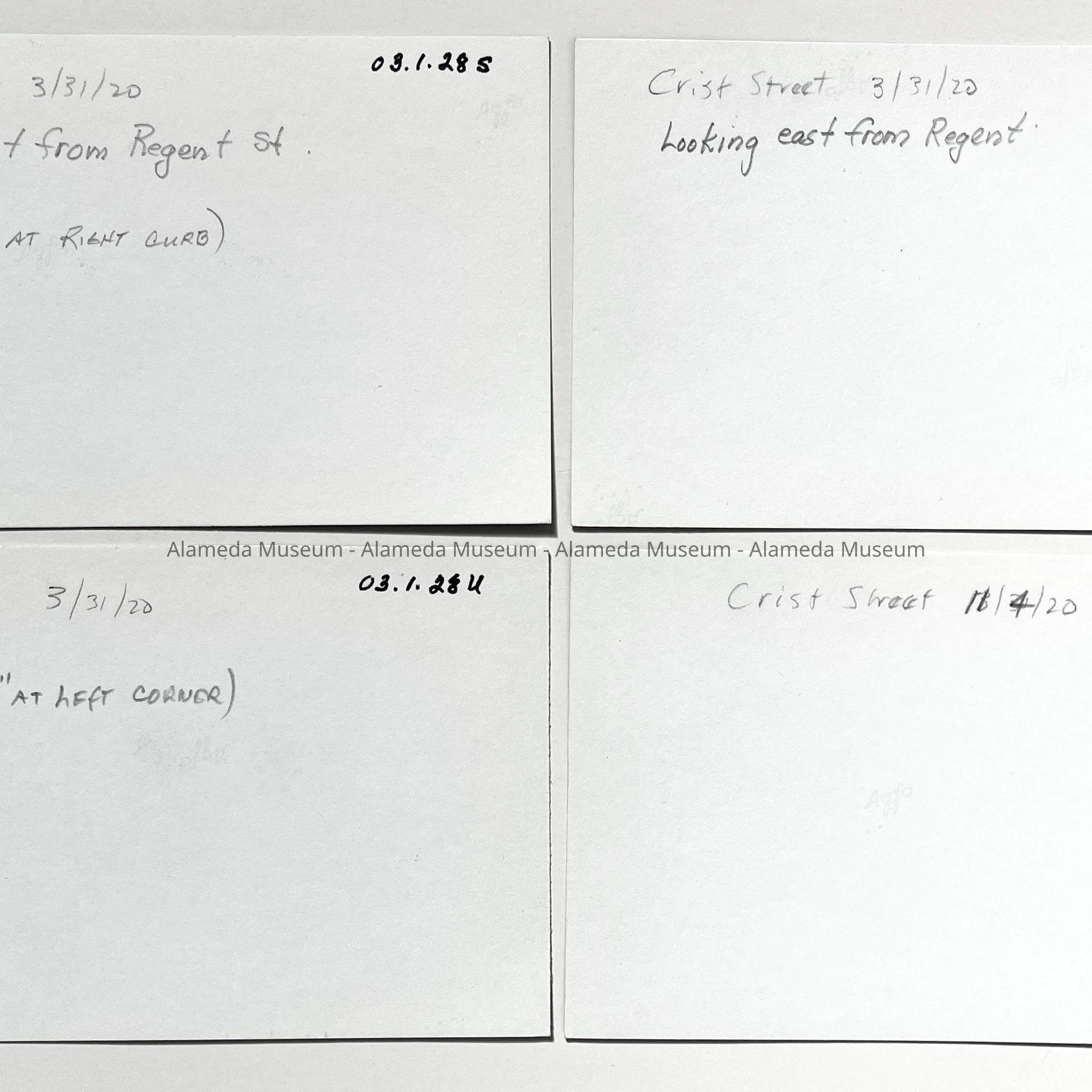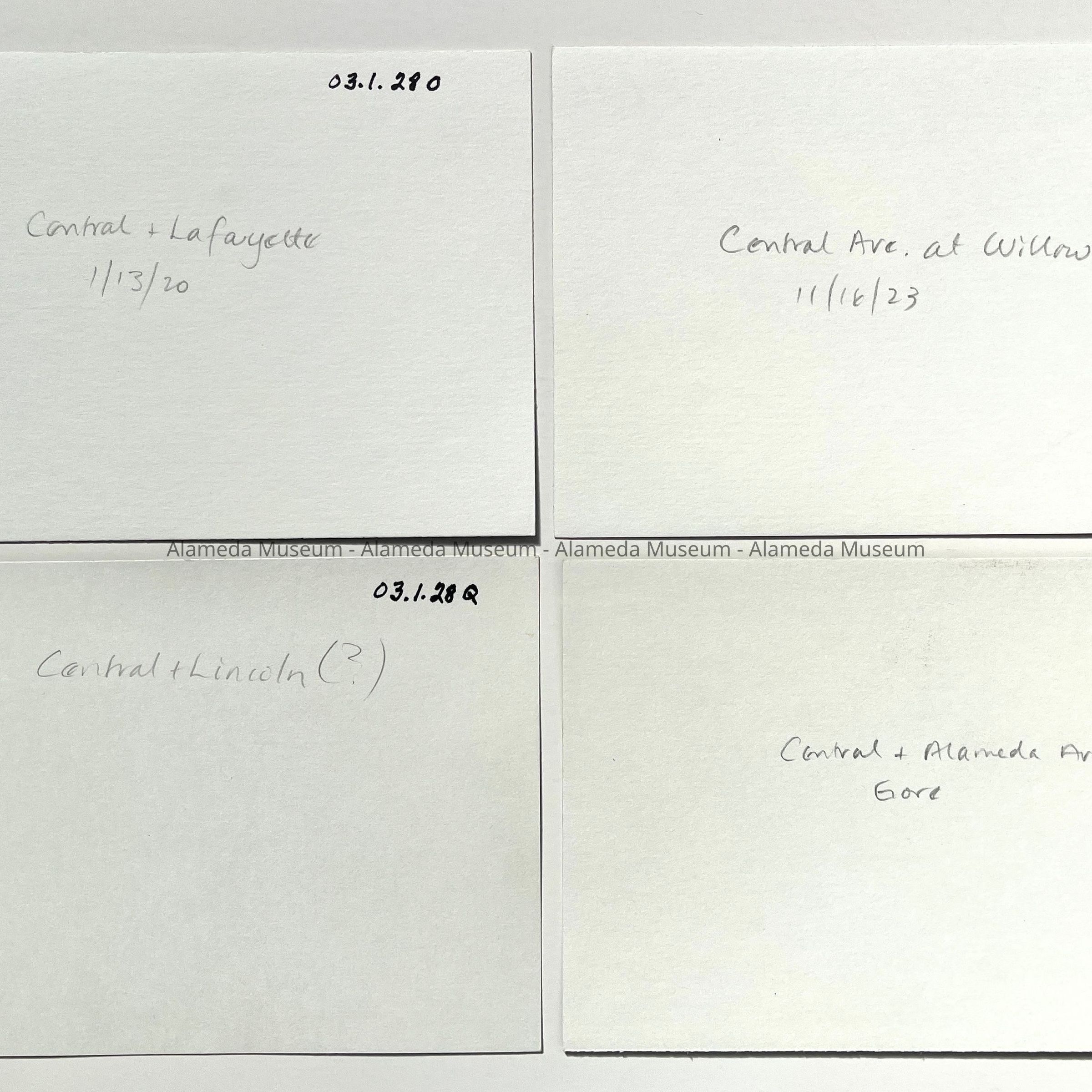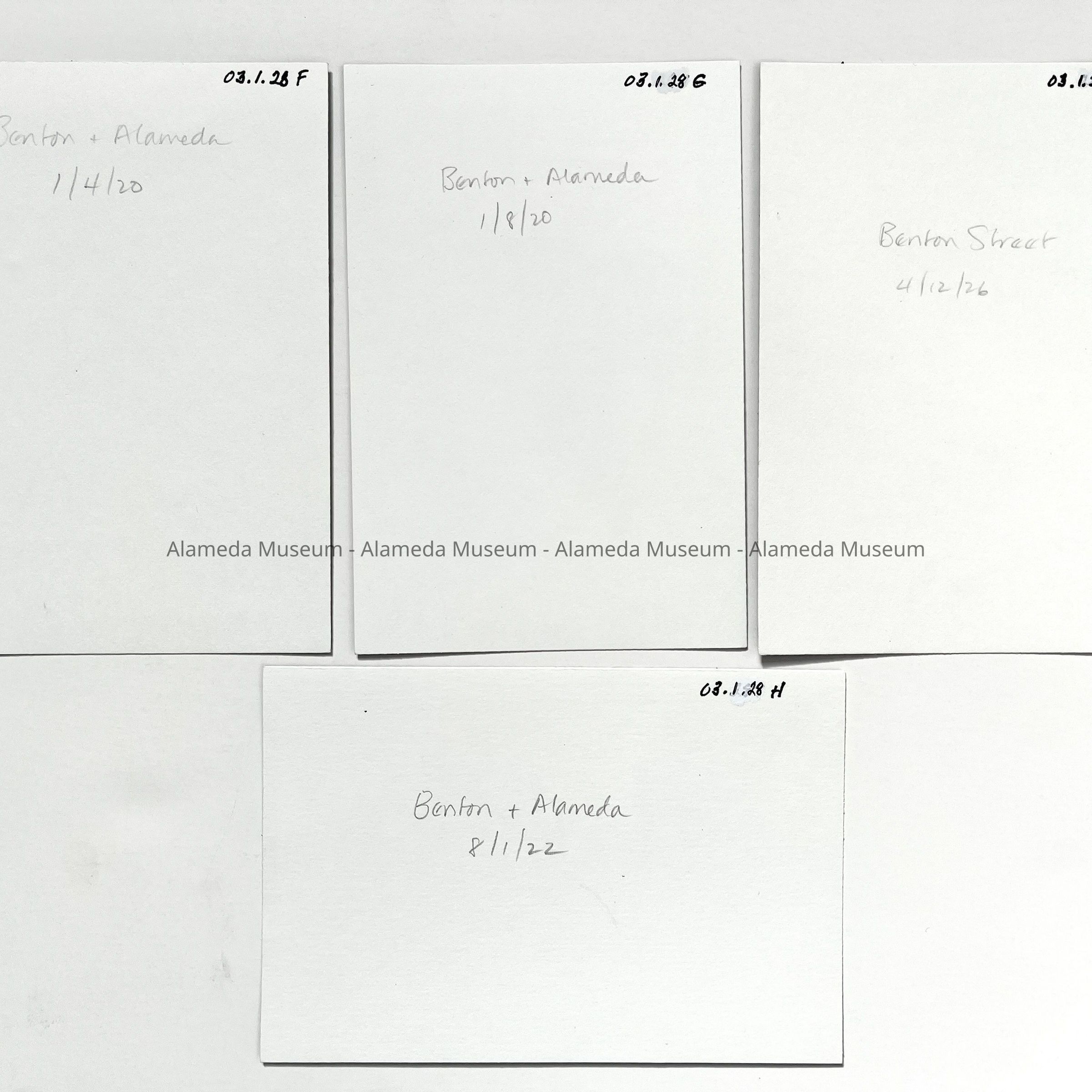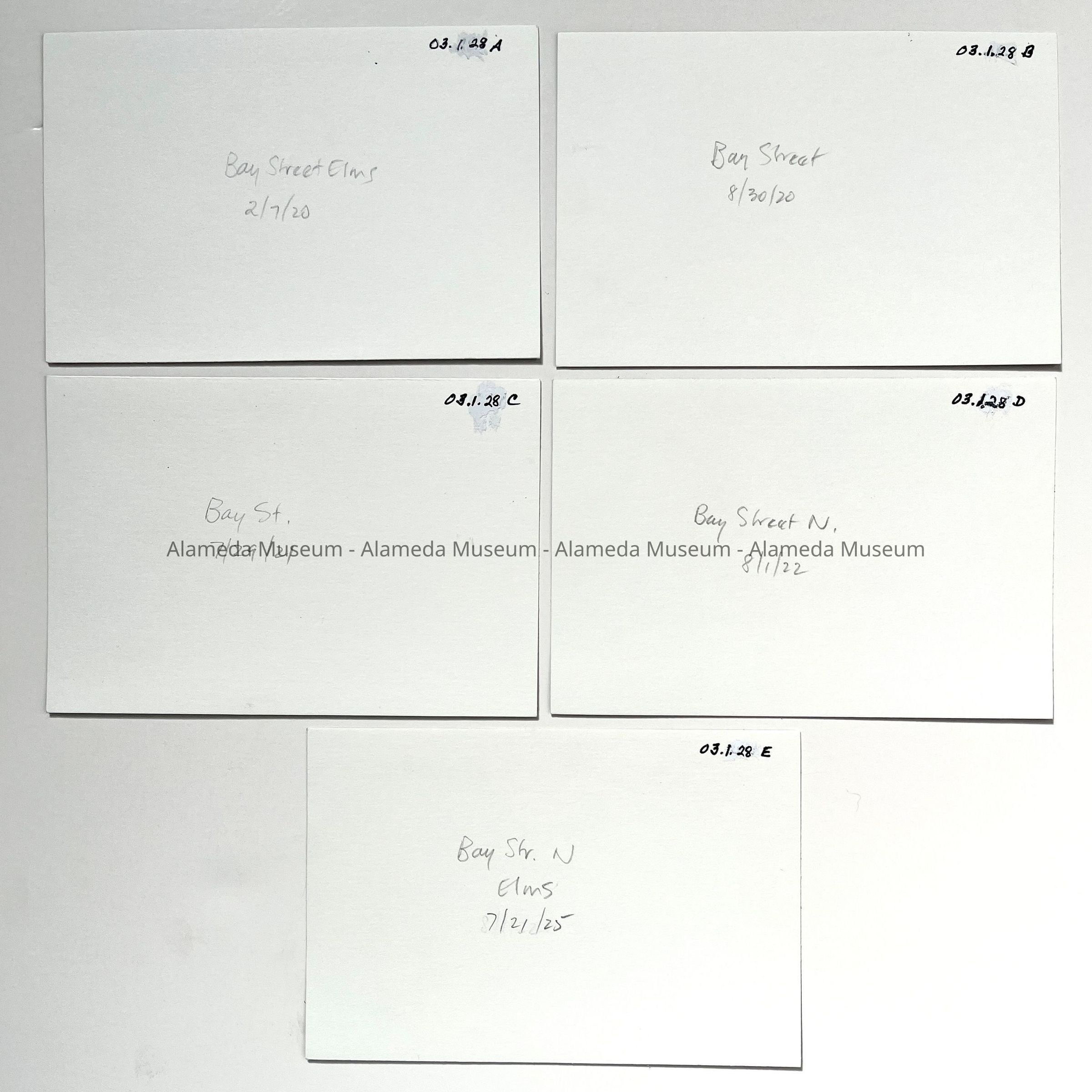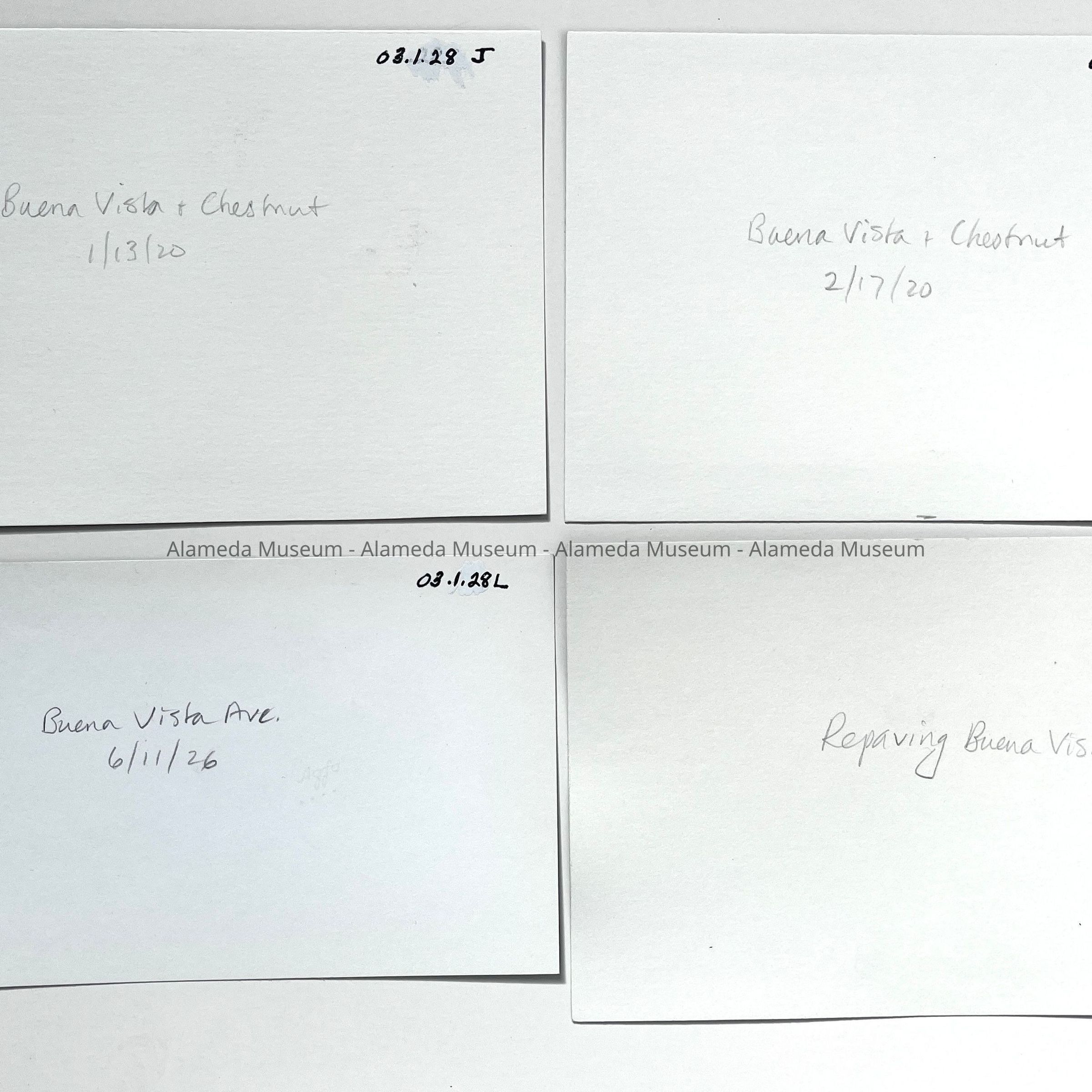 History of Object: General views of Alameda streets: A-E) Bay Street; F-I) Benton St.; J-M) Buena Vista Ave.; N) Cambridge Dr.; O-R) Central Ave.; S-V) Crist St.; W-Y) Grand St.; Z) Madison St.