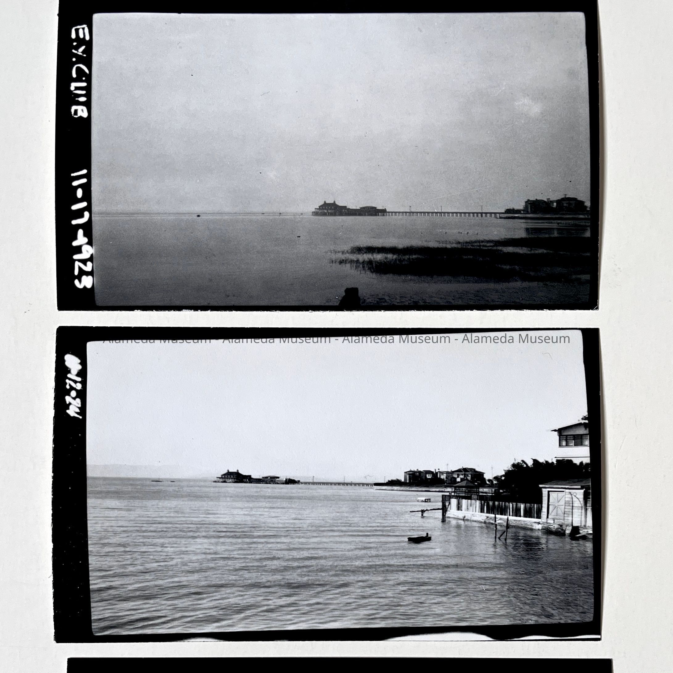 Contact prints of photos of distant views of the Encinal Yacht Club, 1923/1924Entry/Object ID