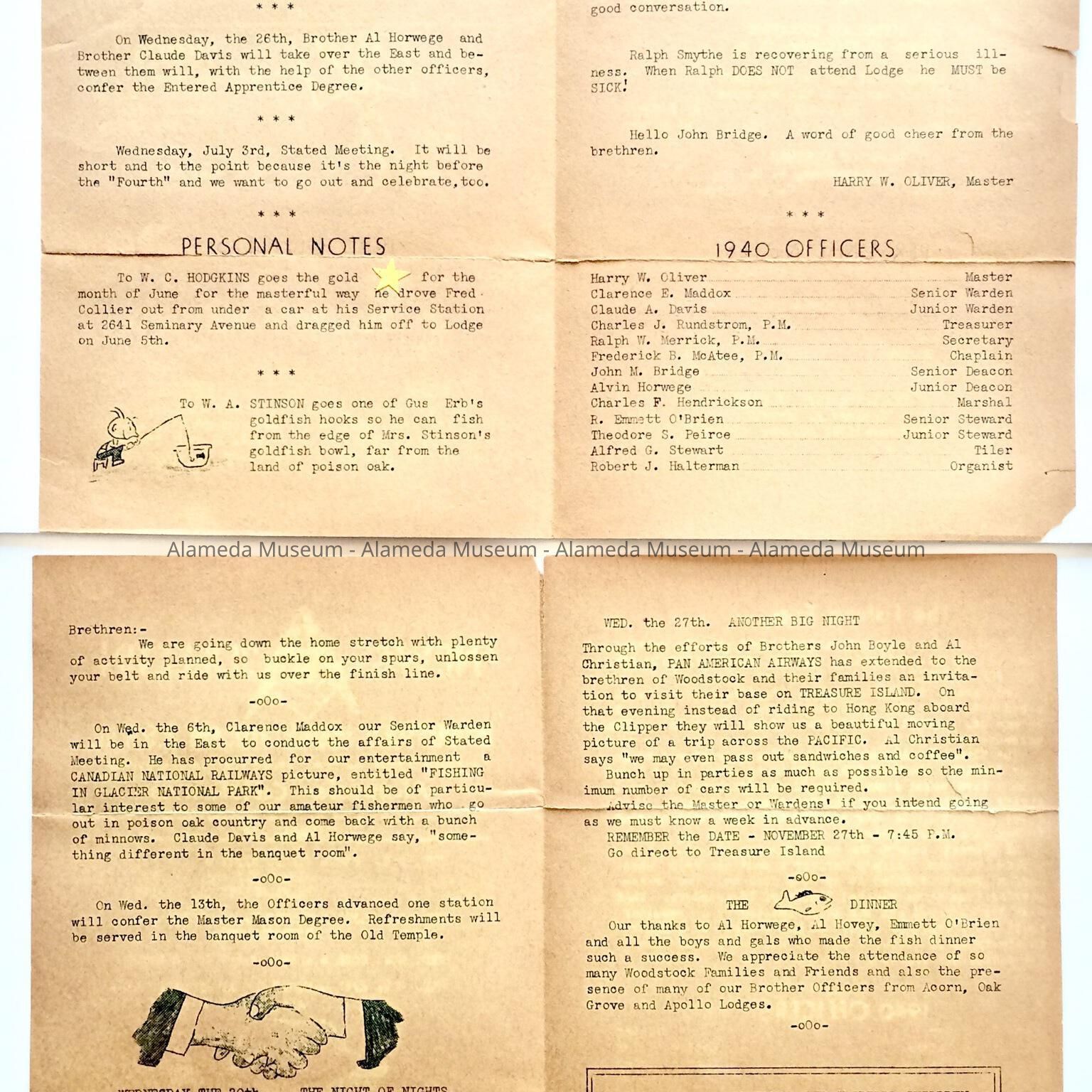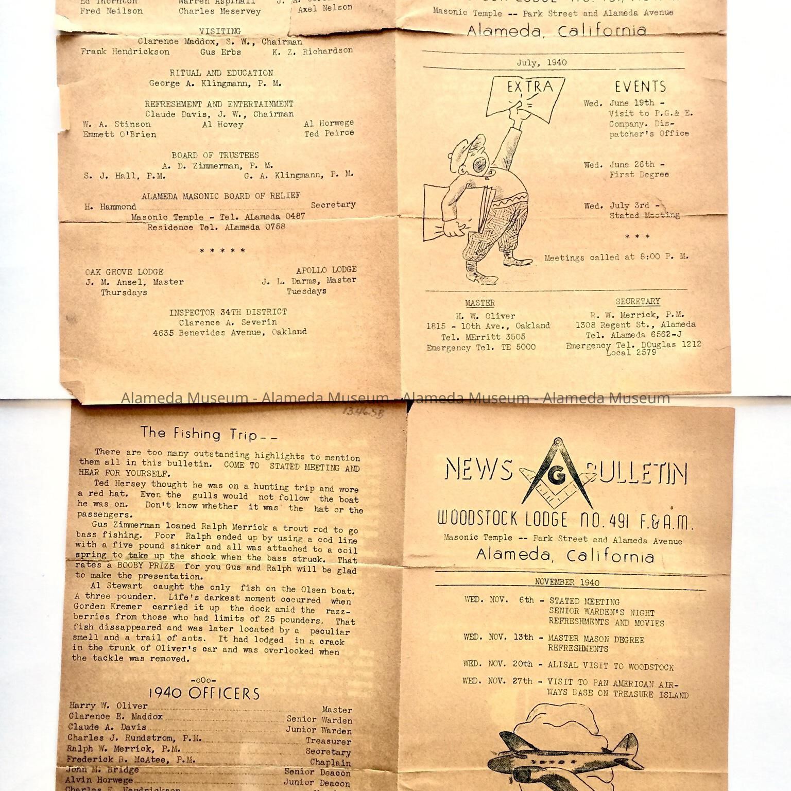 Copies of Bulletins of the Woodstock Lodge 491, Masons, 1940Entry/Object ID
