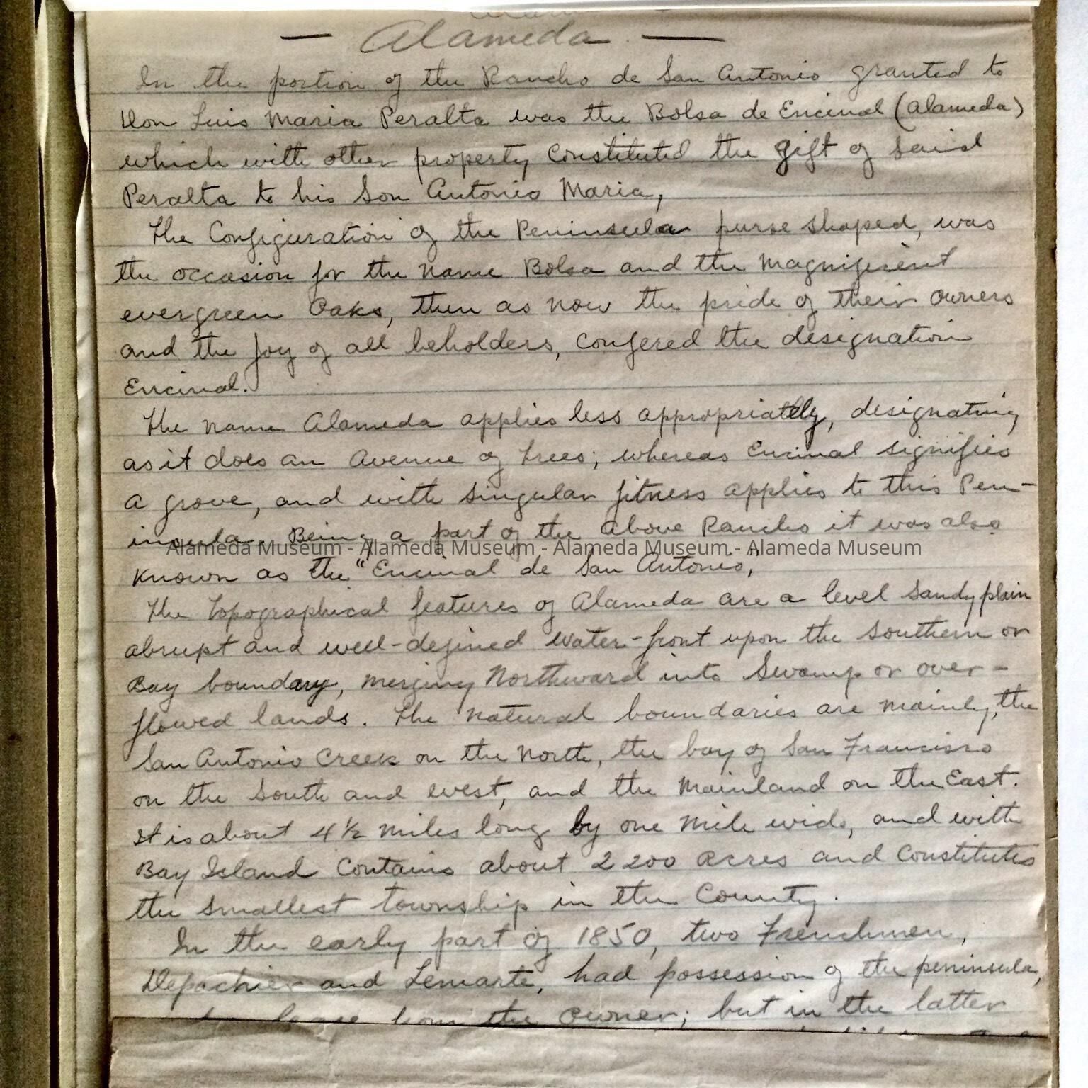 History: History of Alameda from 1850 to 1878 taken from Thompson and West's Altas of Alameda County 1878.