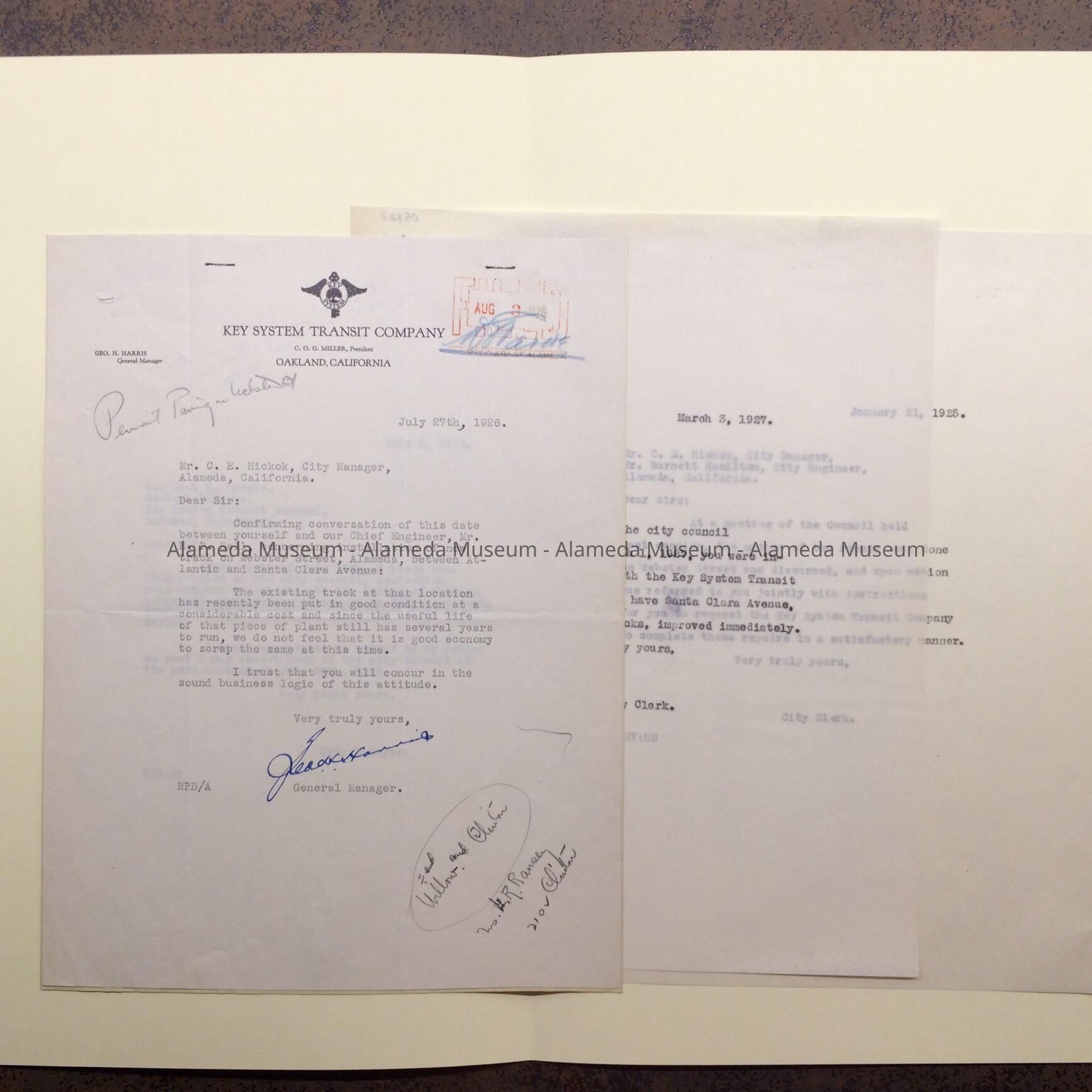 Correspondence about Key System Transit Track on Webster Street, 1926Entry/Object ID