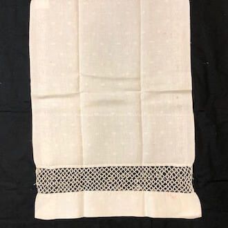 Cotton damask guest towel with crocheted panel, early 1900sEntry/Object ID